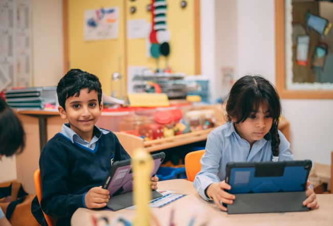 Additionally, each student at Ajman Academy receives an iPad that can be quickly connected to the Veri-table. Playthings are available for the lower primary students and a dedicated indoor area for building motor skills. Additionally, corridors are used for breakout areas and individual or small-group activities. Foundation Stage 1 students live in a separate building called ‘nursery,’ which includes a play area, a classroom, and other amenities.