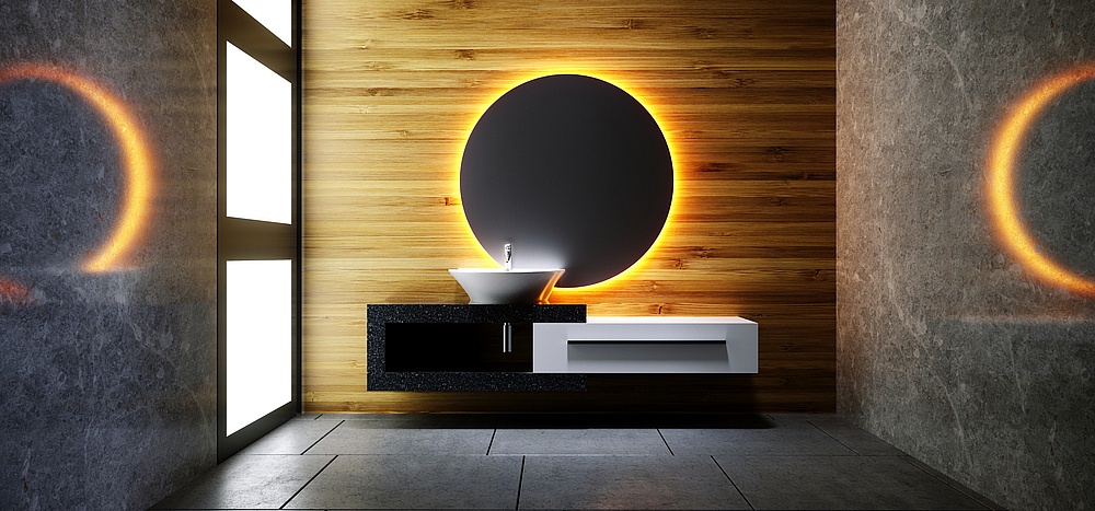 You can add a bit of delicateness with a round mirror to your restroom, as it mixes consistently with the stream without unsettling influence. Then again, a long mirror reinforces the general look of the washroom. Thus, these two mirrors continuously move in the restroom to reflect the plan world. Rather than acquiring shiny gold mirrors, How about stacking two frameless circular mirrors for an exciting plan.Likewise, they picked sly, present-day lighting rather than over-the-top crystal fixtures. It permits us to focus on the genuine proclamation: that sculptural metallic and red marble sink. The dull wood subtleties and divider framing additionally cut in a rational, nature-motivated feeling of coarseness without dressing the whole space down.