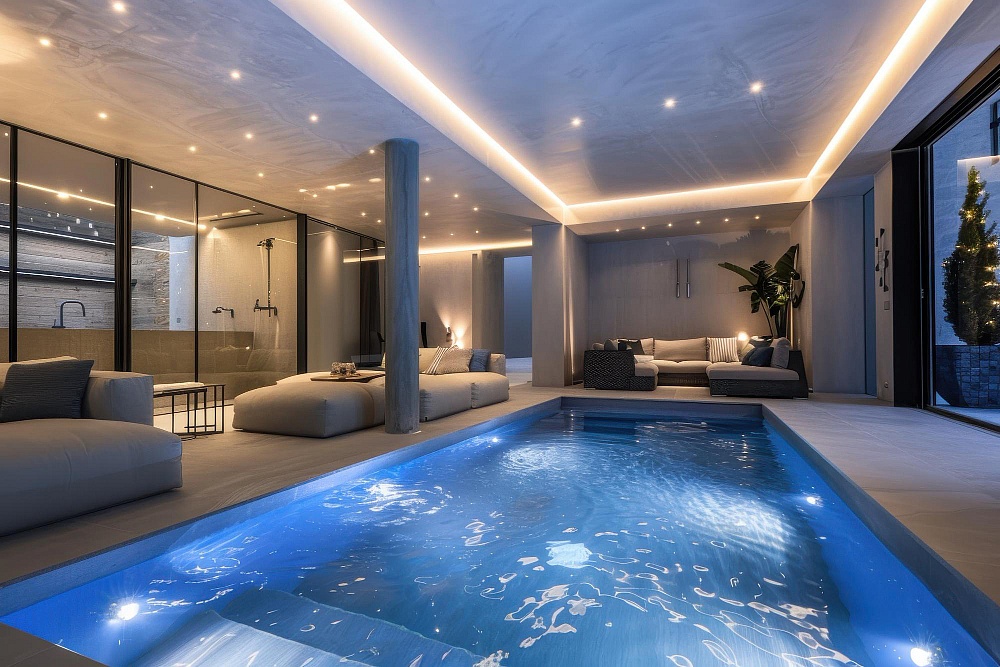 For those looking to make a statement, neon edge lighting creates a futuristic look that aligns with high-end swimming pool trends in 2025. This type of lighting outlines the pool edges, making them visually striking and improving night visibility. Neon lighting is often seen in luxury resorts and private properties, such as when you buy a villa in Ajman with high-end pool features. It offers a striking, bold aesthetic that enhances the modernity of swimming pool spaces.