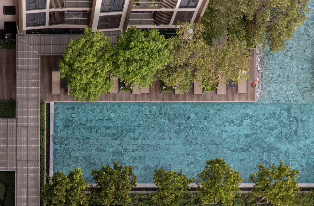 Rectangles aren't the most creative pool forms, but they're trendy and functional. Their iconic extended shape makes them great for swimming laps, training youngsters to swim, and family fun for starters. They may also be arranged in a consistent pattern, making them ideal for narrow backyards, residential towers, and luxury penthouses.Rectangle pools, don't get us wrong, aren't dull because of their regularity! You may experiment with different dimensions and depths and integrate unique elements like revolutionary step patterns, seats, and corner hot tubs. Rectangular pools are sleek and contemporary in appearance.