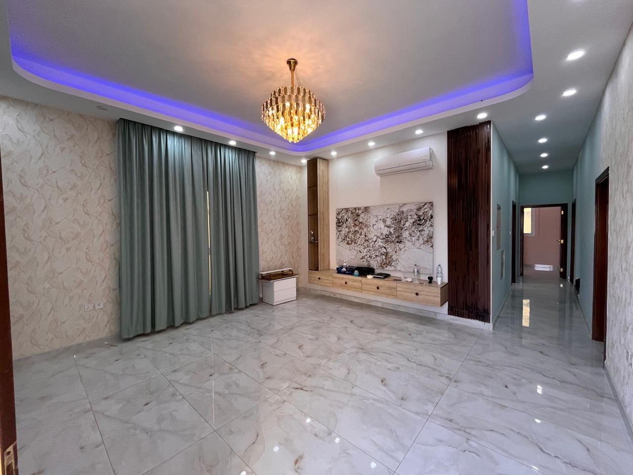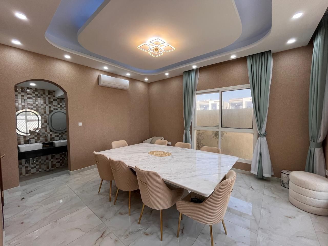Elegant Living Spaces: A spacious majlis and several halls are designed to create enough space for family functions and entertaining guests.