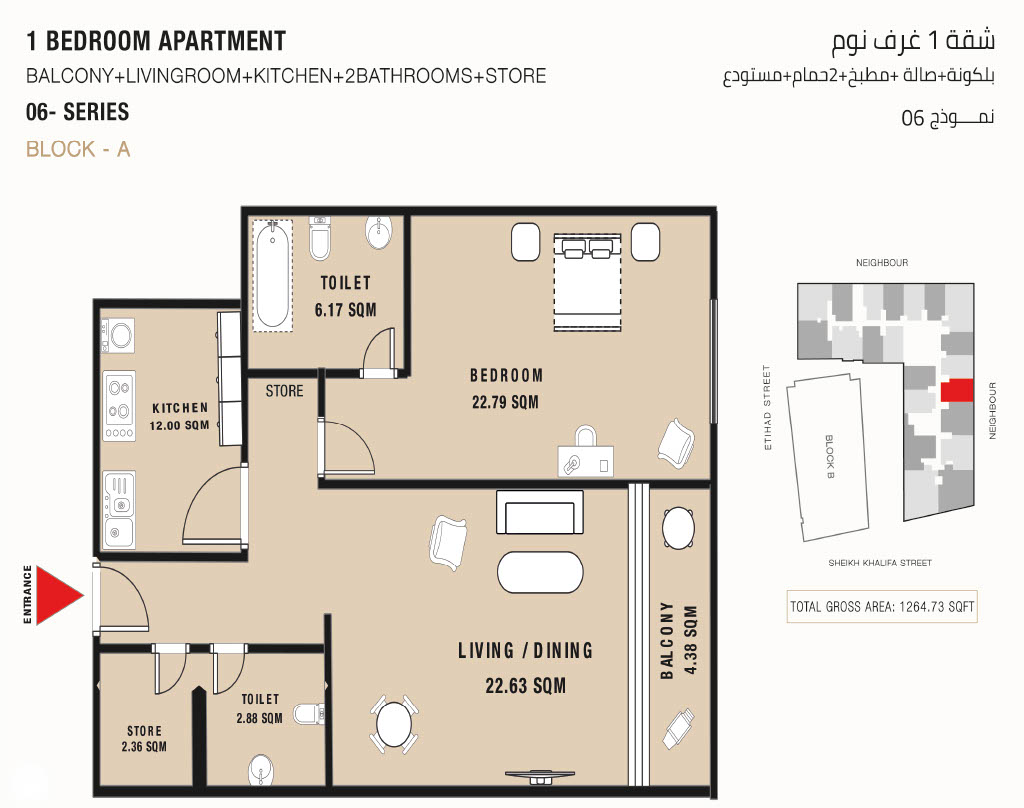 The apartment is close to nearby amenities like schools, hospitals, restaurants, pharmacies, etc. Book yourself the apartment in this wonderfully featured building. The architecture of the apartment is unique and full of facilities. It provides the residents with comfortable living. The installment plan of the apartment is also very feasible, including a down payment of 5% and the remaining installment for 7 years. Gulf Tower is going to hand over in 2023.