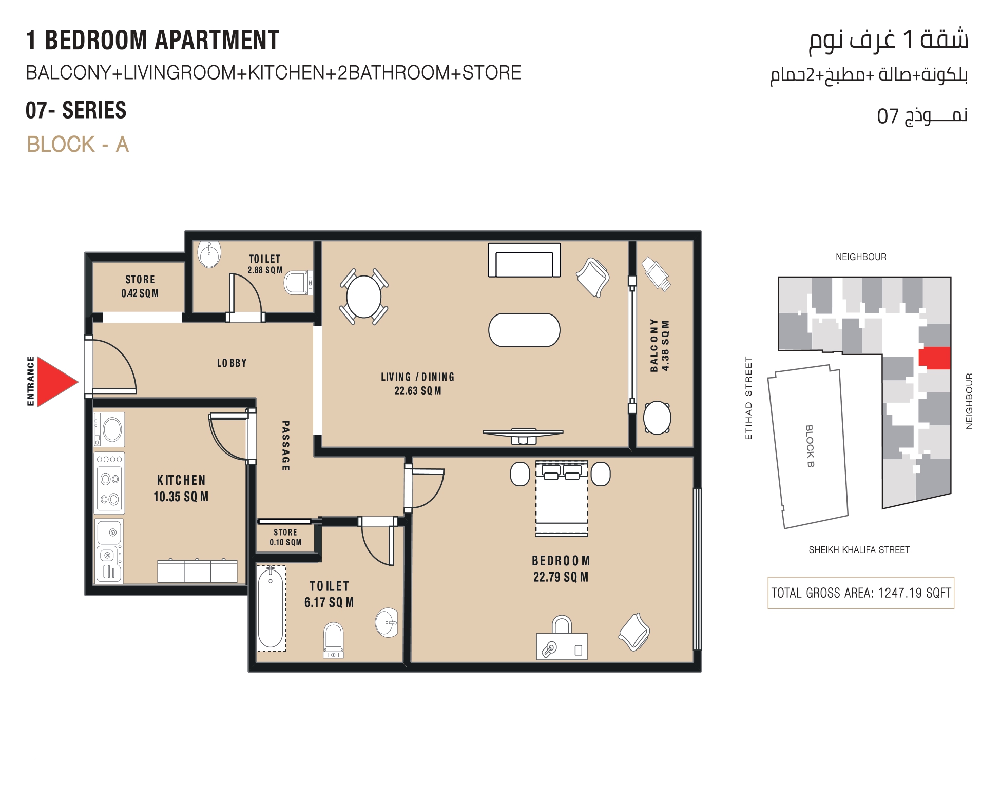 The apartment has one bedroom, including the finest Living Facilities such as