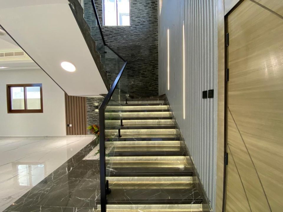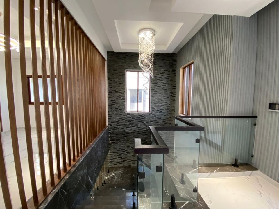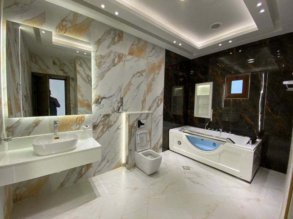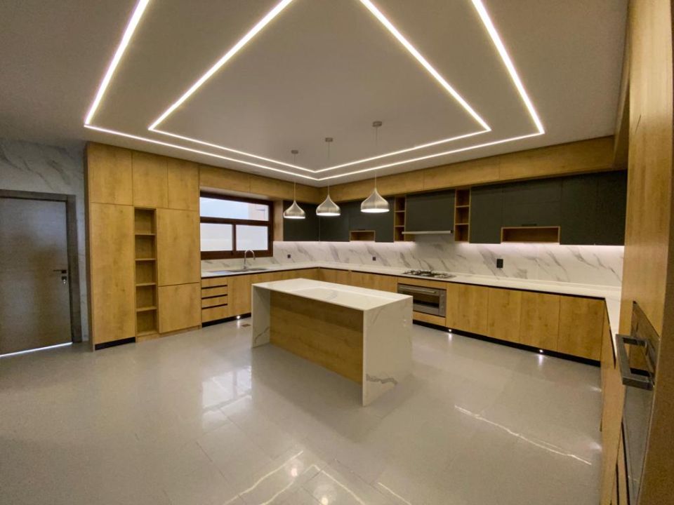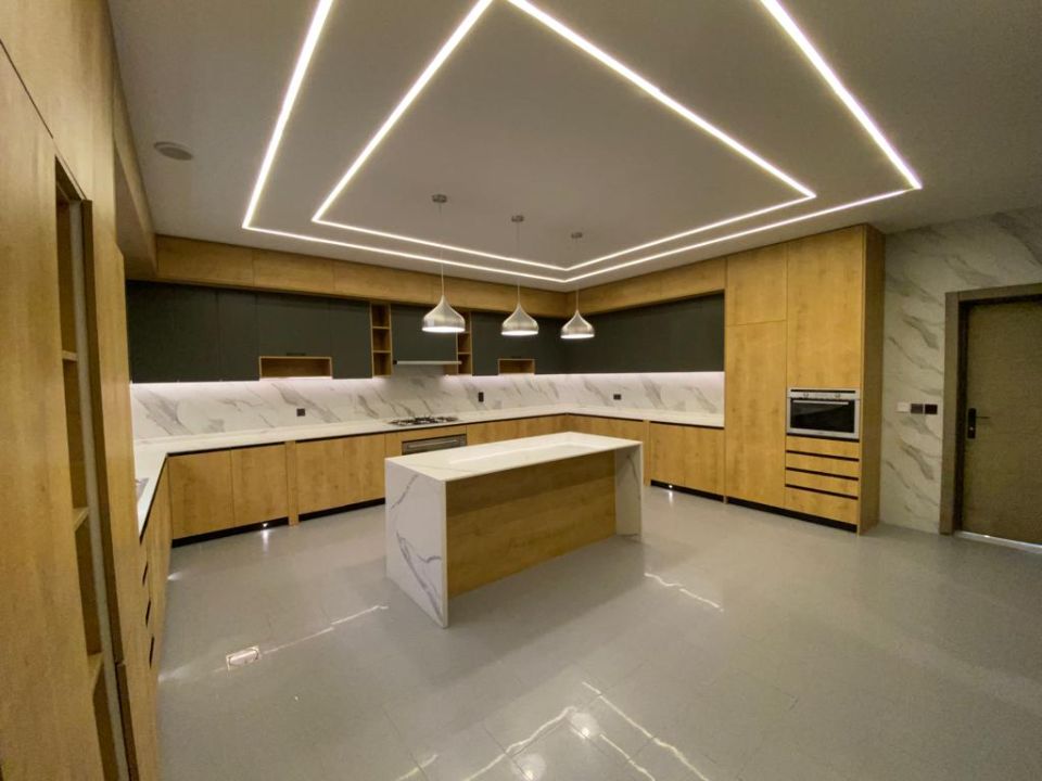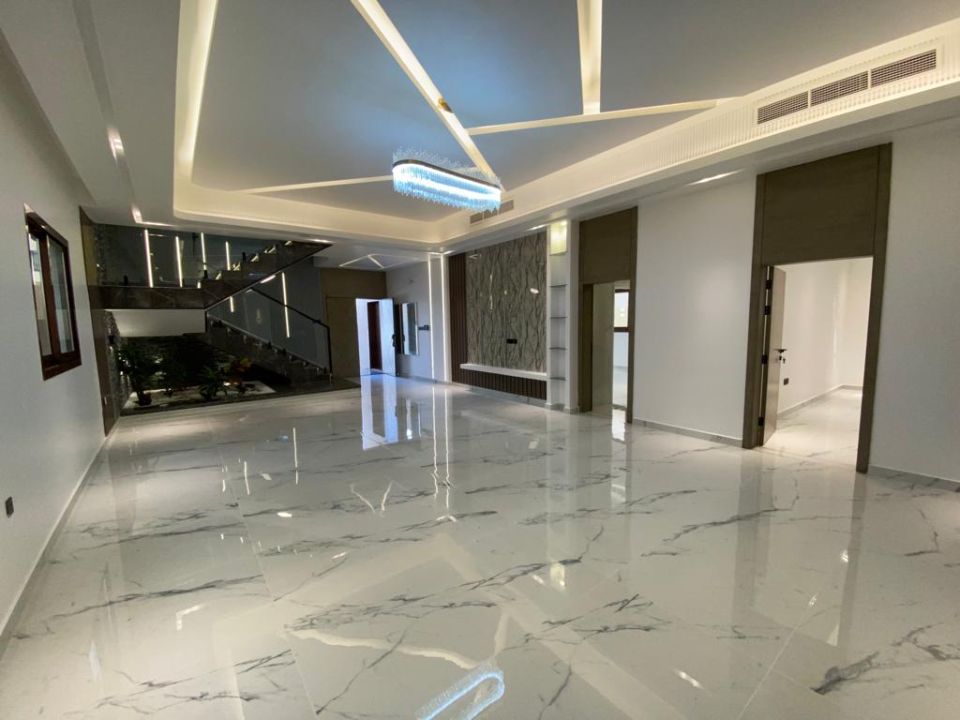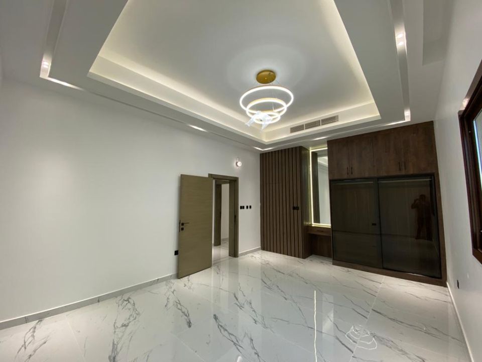 The villa is spread over two floors, with one guest bedroom, kitchen, dining room, TV lounge, maid's room, and storeroom on the ground floor. The remaining four bedrooms, each with built-in wardrobes and a dry pantry, are on the first floor. The villa has a super lux finish with excellent decorations, making it a unique and stylish property. The villa features a range of amenities designed to provide residents with a comfortable and convenient lifestyle, such as: