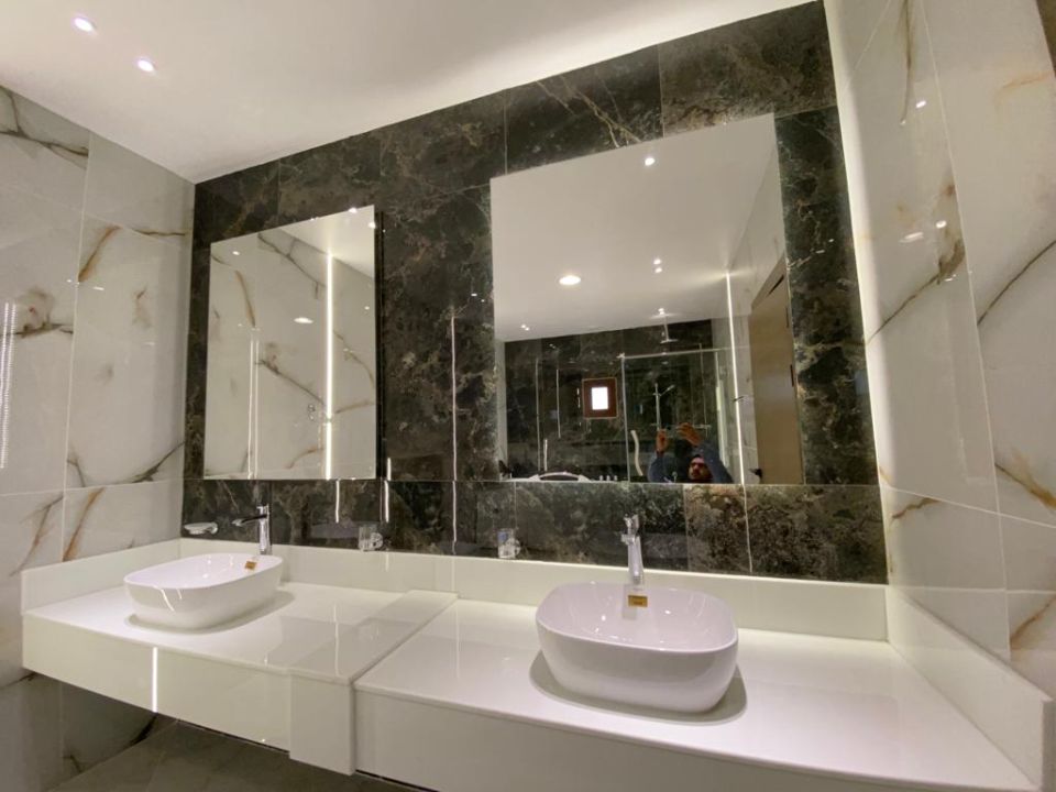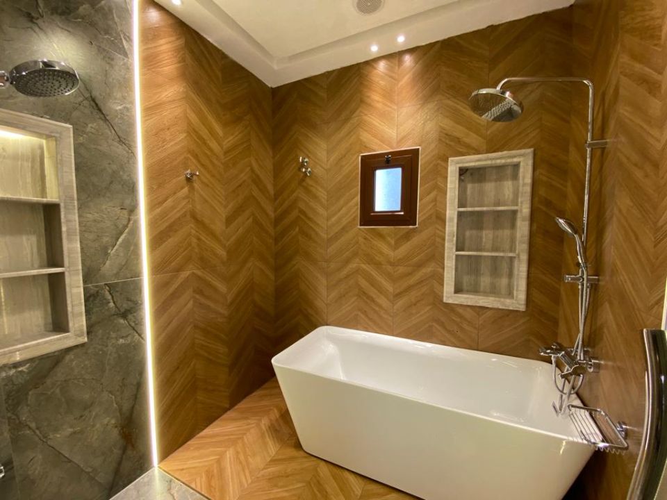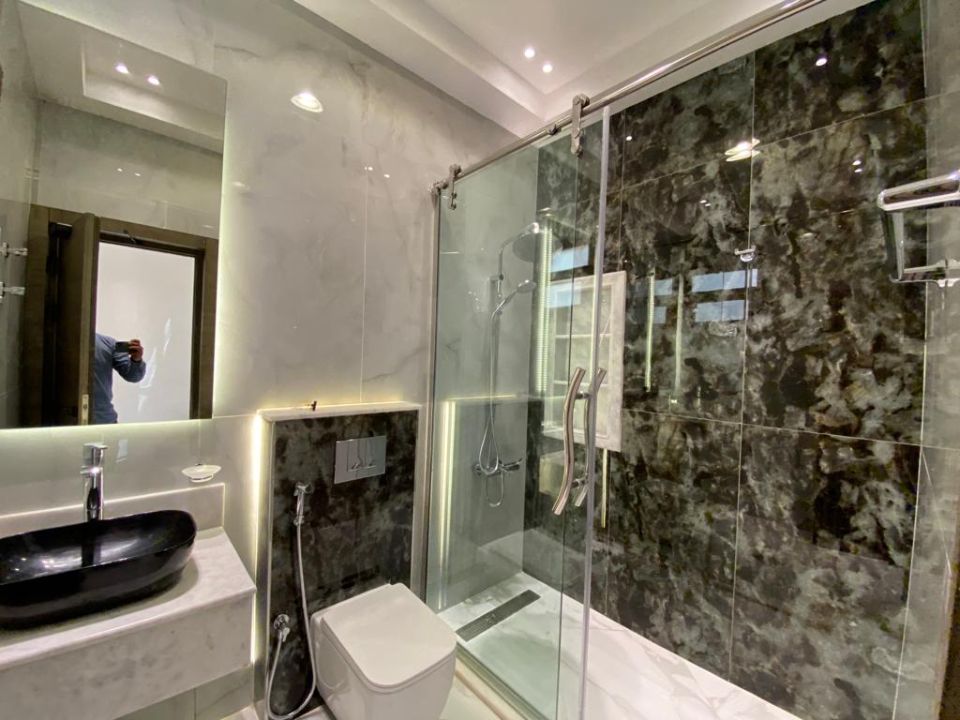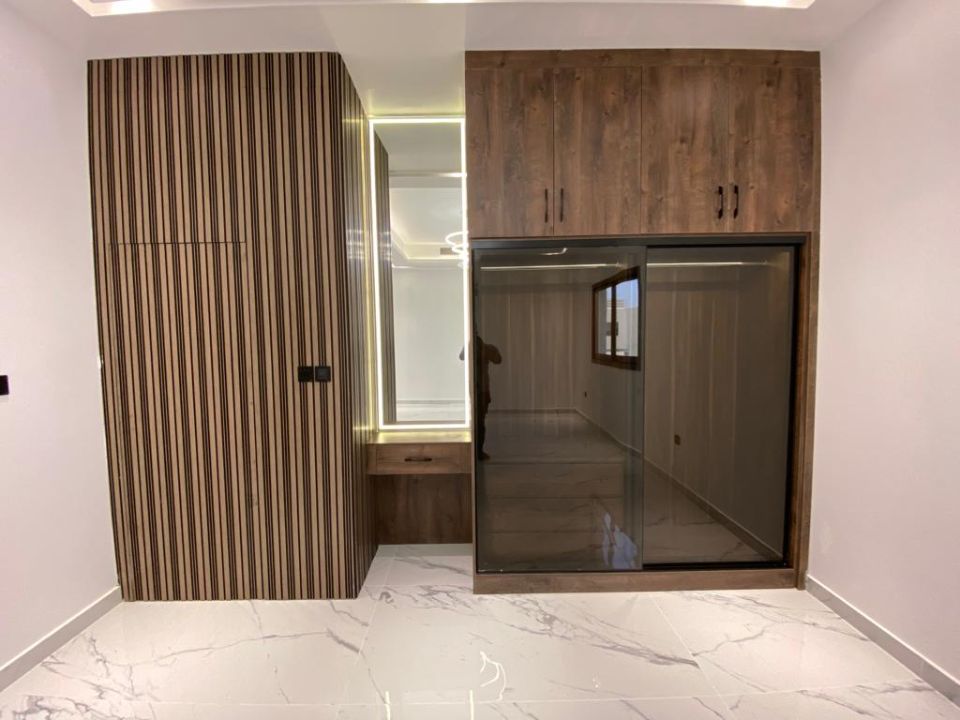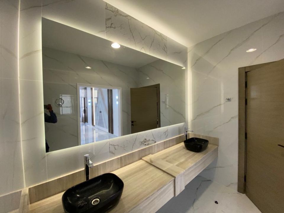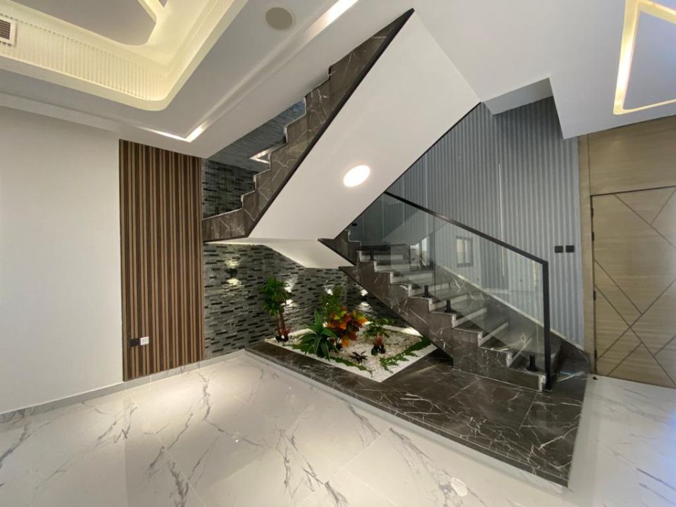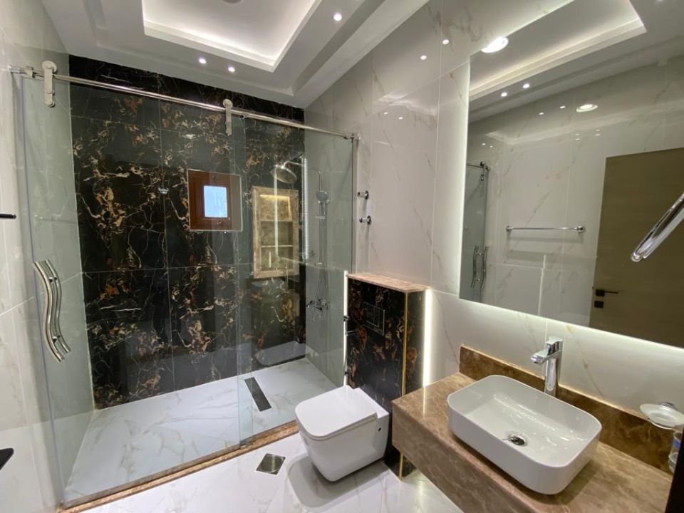 The villa is spread over two floors, with one guest bedroom, kitchen, dining room, TV lounge, maid's room, and storeroom on the ground floor. The remaining four bedrooms, each with built-in wardrobes and a dry pantry, are on the first floor. The villa has a super lux finish with excellent decorations, making it a unique and stylish property. The villa features a range of amenities designed to provide residents with a comfortable and convenient lifestyle, such as: