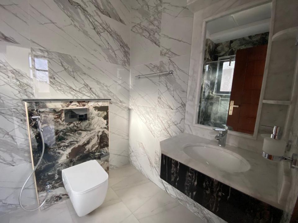 With five bedrooms and six bathrooms, this villa is perfect for families or individuals who want to live in style and comfort. The ground floor features a guest bedroom, kitchen, dining room, TV lounge, maid's room, and storage area. The first floor boasts 4 bedrooms with built-in wardrobes and a dry pantry, perfect for storing all your essentials.