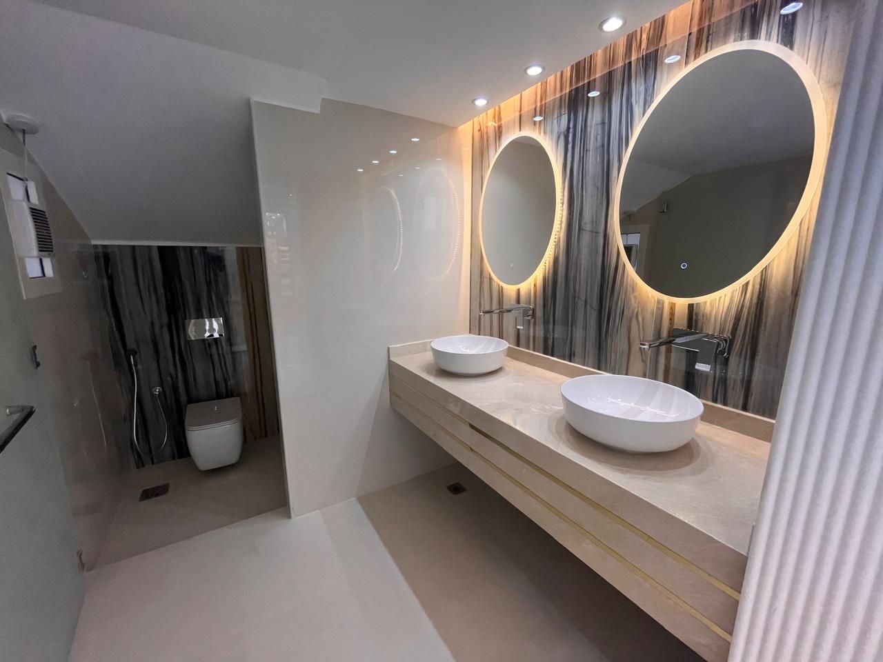 The villa consists of 7 huge bedrooms, all of which incorporate light and space into their design. The attached bathrooms provide privacy and convenience, while, if needed, the hidden wardrobes offer smart storage without compromising aesthetics. The kitchen is fully fitted and modern in both functionality and appearance, so meal preparation is an enjoyable experience.