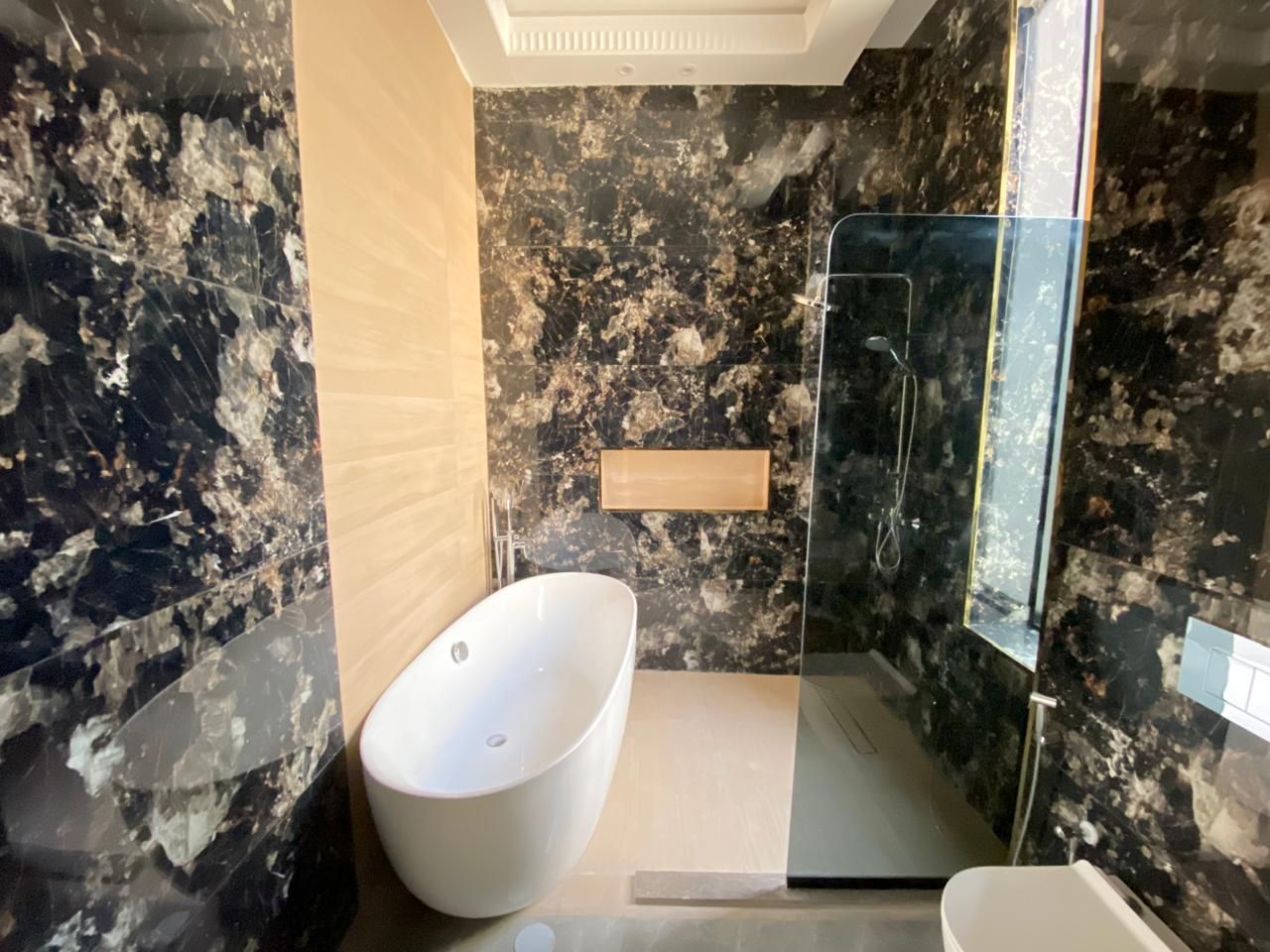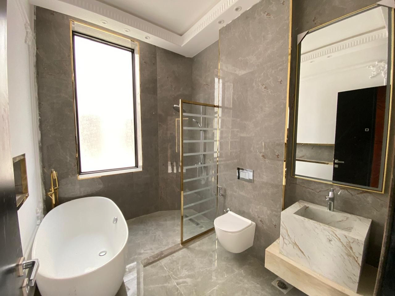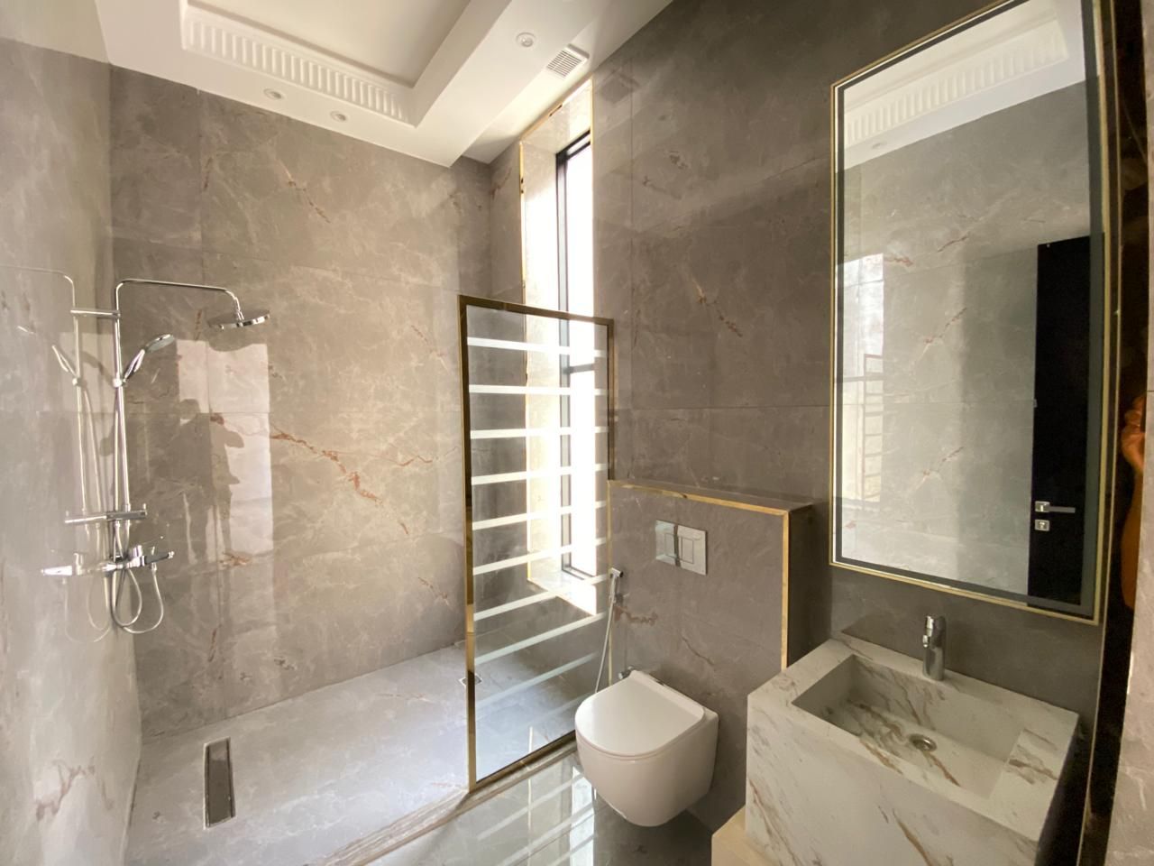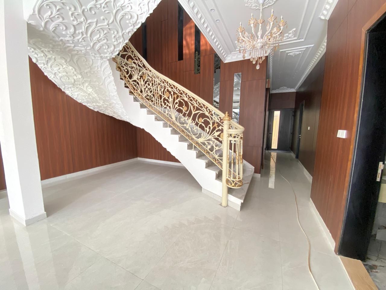 The villa is comprised of five large bedrooms, numerous bathrooms, and ample open living and dining area. The contemporary kitchen features high-end kitchen equipment and ample storage space. Outdoor features and facilities include a private garden, covered parking, and maid quarters. High-quality finishing and big windows offer a sunlit, aristocratic room.