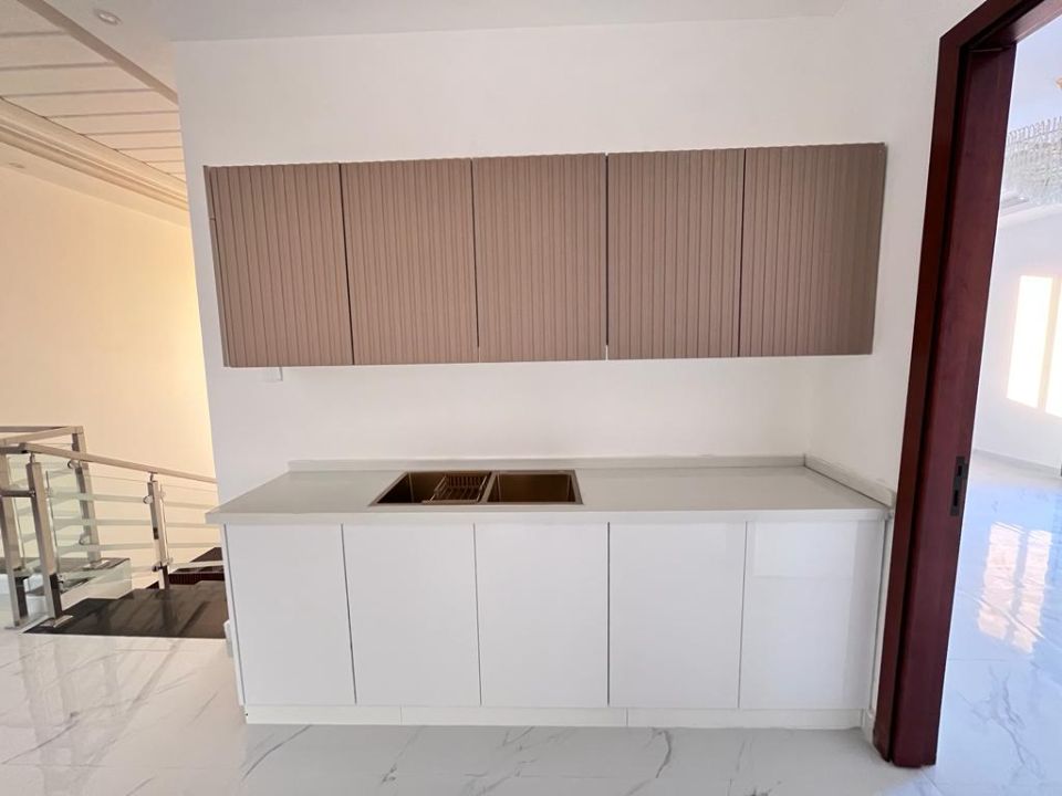 The villa's attractiveness does not end there. Consider cooking in a contemporary kitchen with all the necessary facilities to make culinary treats for your loved ones. The fitted wardrobes in this room are wonderful for neatly tucking away all your possessions, offering adequate storage space. One of the villa's highlights is its beautifully landscaped garden, which provides a great setting for outdoor activities. Adding a maid's room ensures your household runs smoothly, while the storeroom and dry pantry keep everything in order.