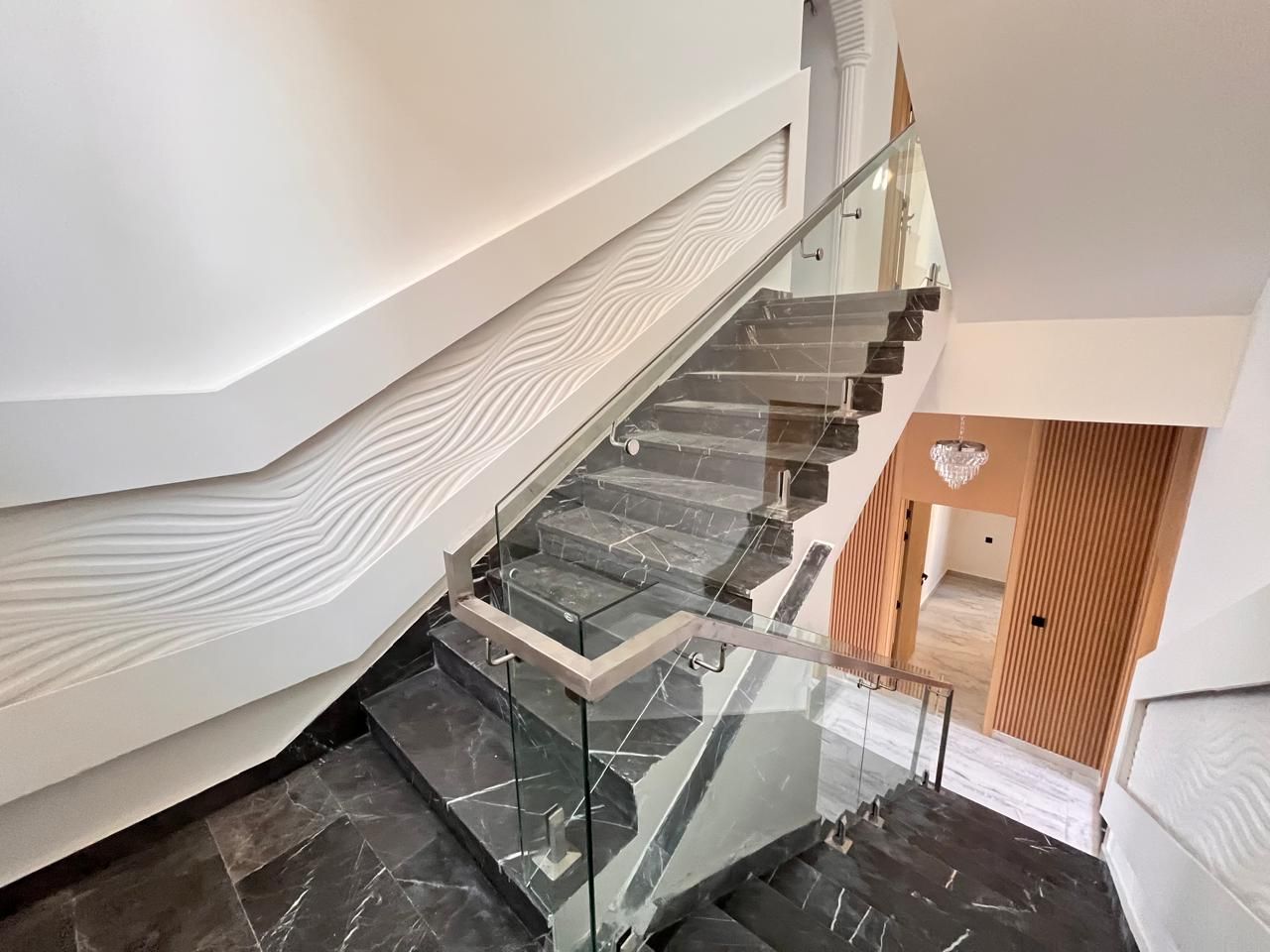 The villa consists of 6 huge bedrooms, all of which incorporate light and space into their design. The attached bathrooms provide privacy and convenience, while, if needed, the hidden wardrobes offer smart storage without compromising aesthetics. The kitchen is fully fitted and modern in both functionality and appearance, so meal preparation is an enjoyable experience.