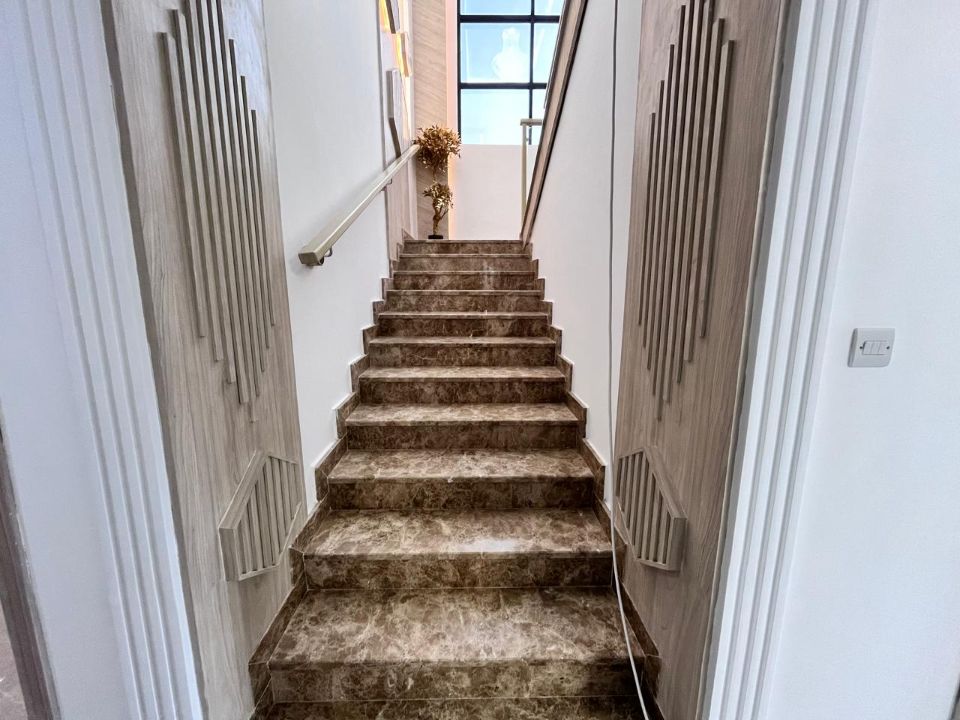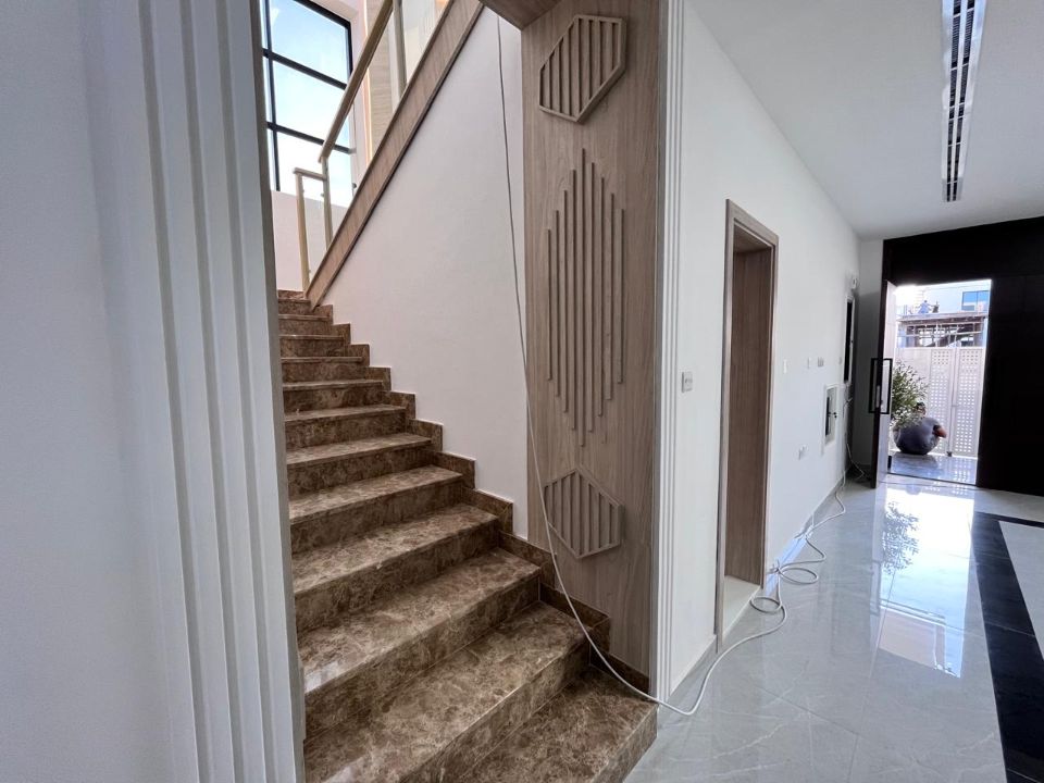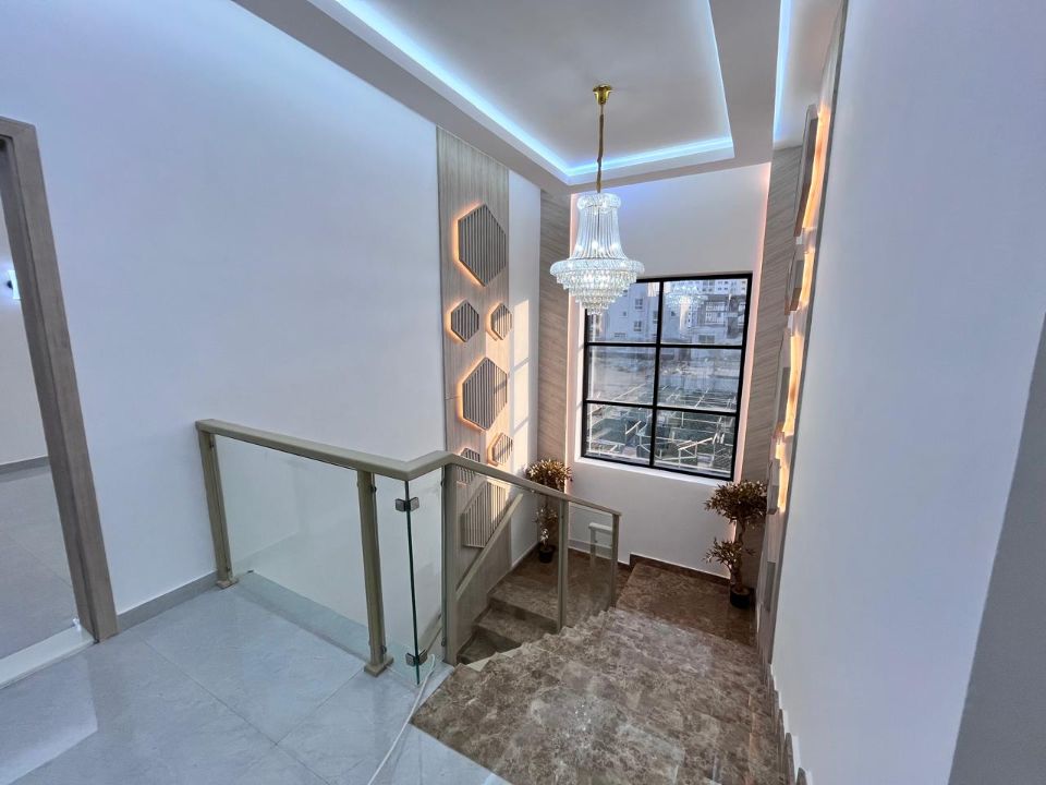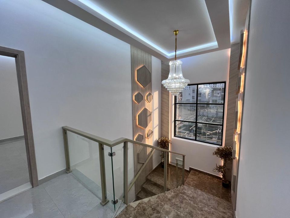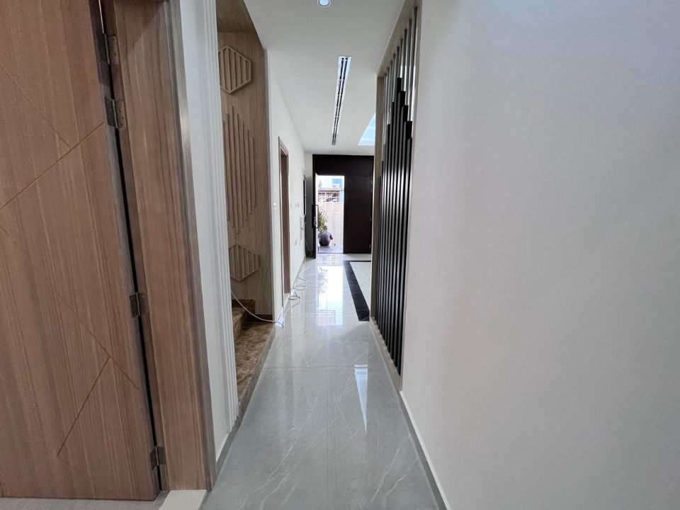 Spanning a generous 3450 square feet of land, the villa boasts a lush garden and beautifully designed living spaces. Thoughtfully crafted with luxurious touches, the property features a main and preparatory kitchen, a grand living room, and a spacious hall, complemented by an additional upper hall on the second floor. With five master bedrooms featuring built-in closets and an adjoining master maid's room, this home provides ample space for family or guests.