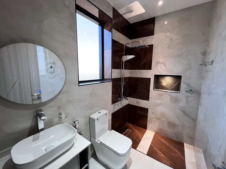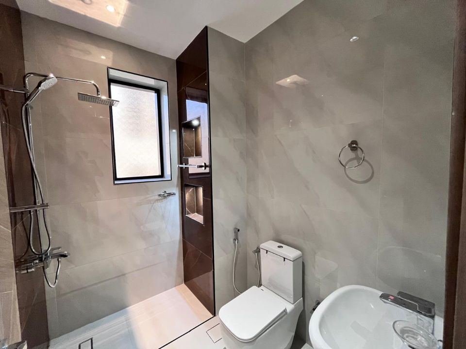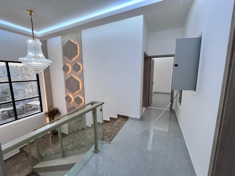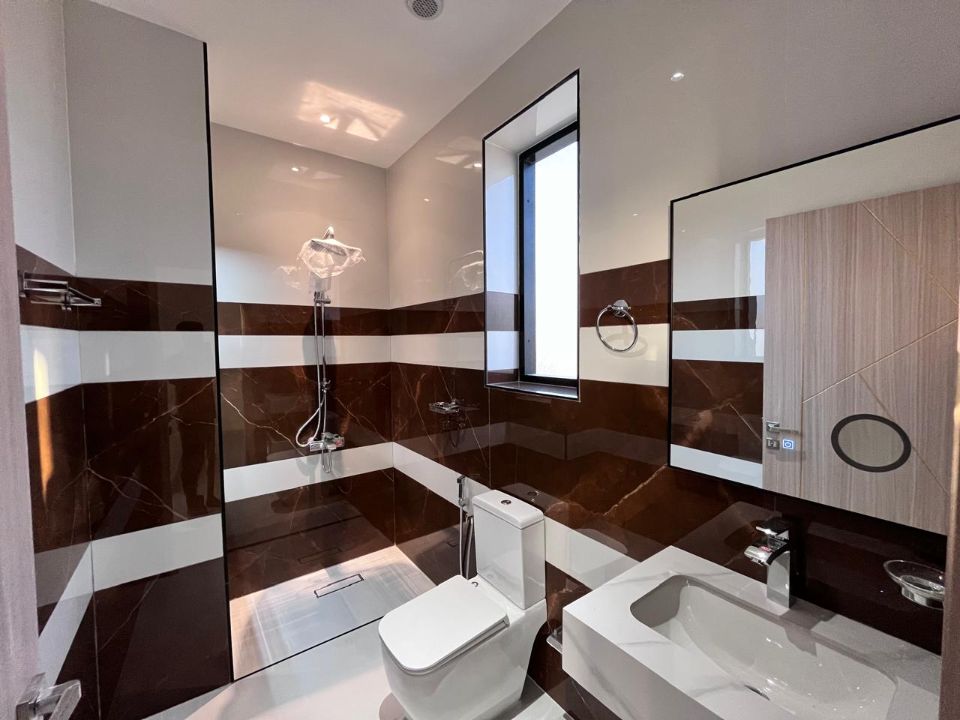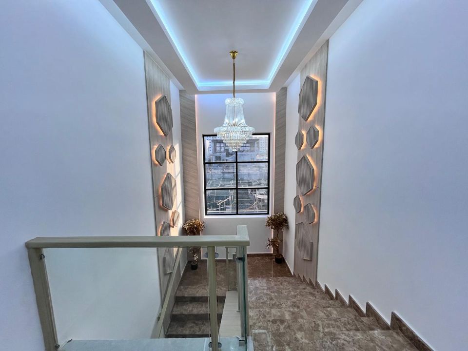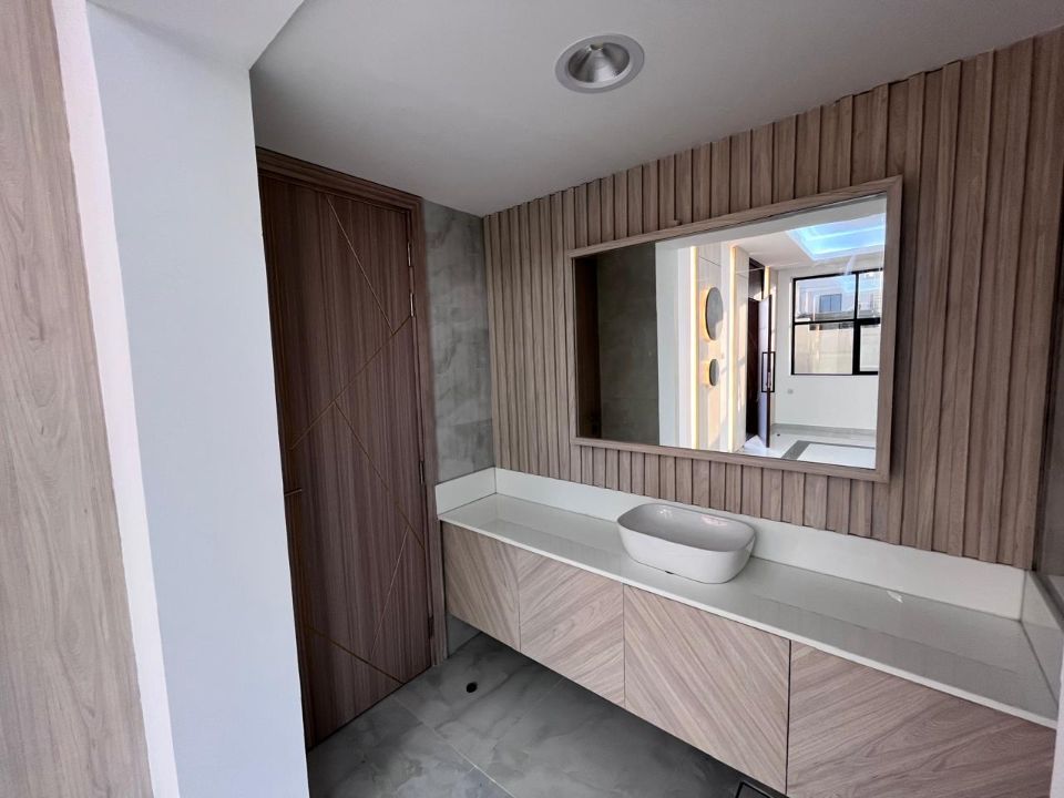 Spanning a generous 3450 square feet of land, the villa boasts a lush garden and beautifully designed living spaces. Thoughtfully crafted with luxurious touches, the property features a main and preparatory kitchen, a grand living room, and a spacious hall, complemented by an additional upper hall on the second floor. With five master bedrooms featuring built-in closets and an adjoining master maid's room, this home provides ample space for family or guests.