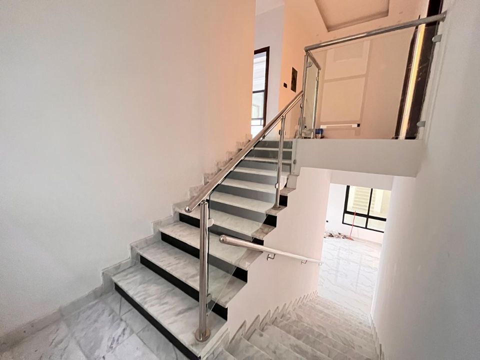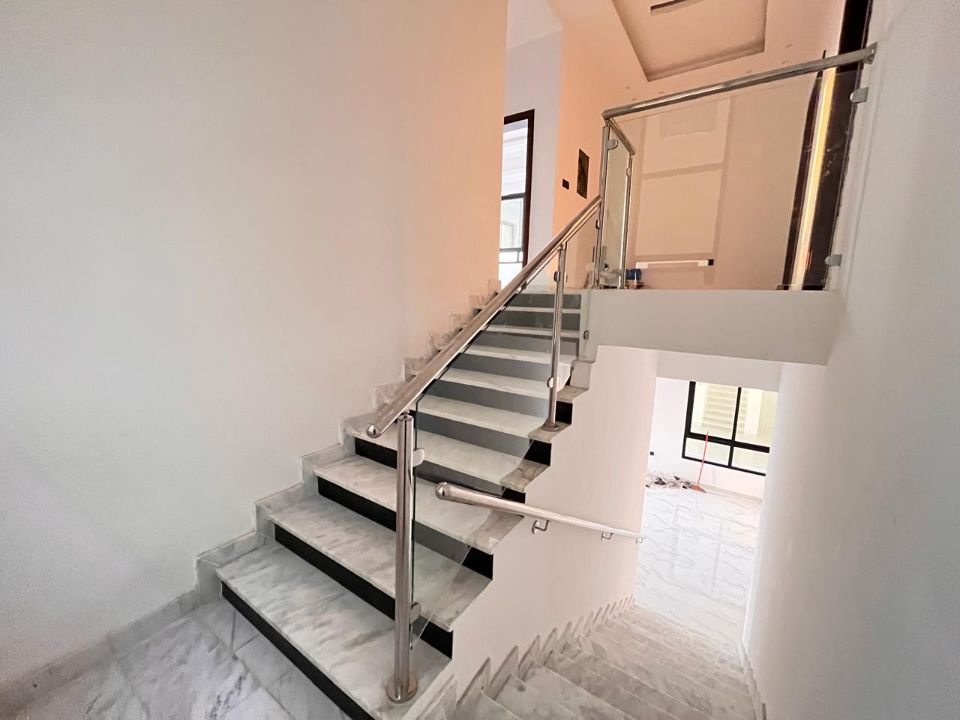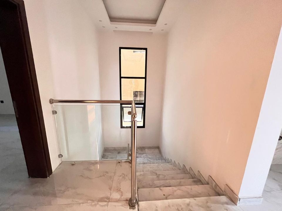 Spanning a generous 3500 square feet of land, the villa boasts a lush garden and beautifully designed living spaces. Thoughtfully crafted with luxurious touches, the property features a primary and preparatory kitchen, a grand living room, and a spacious hall, complemented by an additional upper hall on the second floor. With five master bedrooms featuring built-in closets and an adjoining master maid's room, this home provides ample space for family or guests.