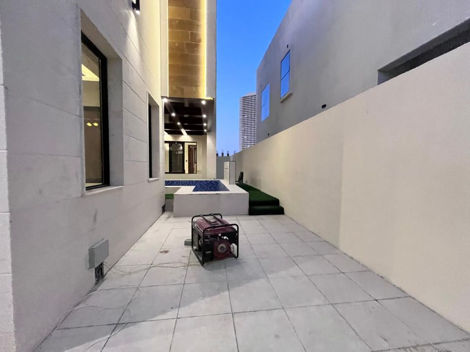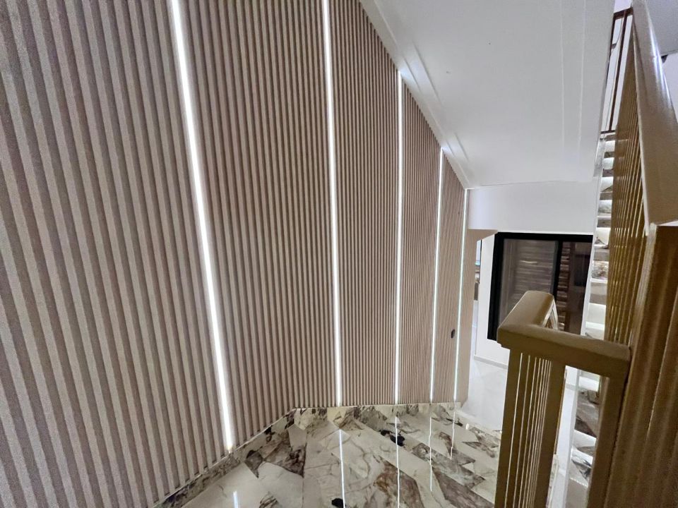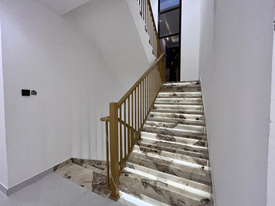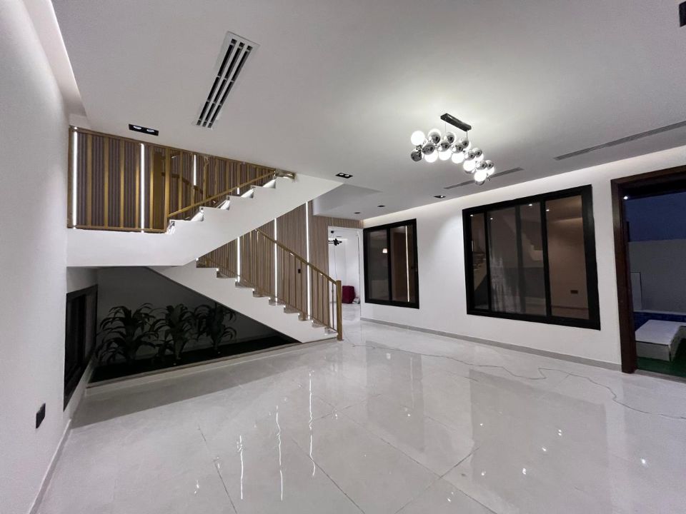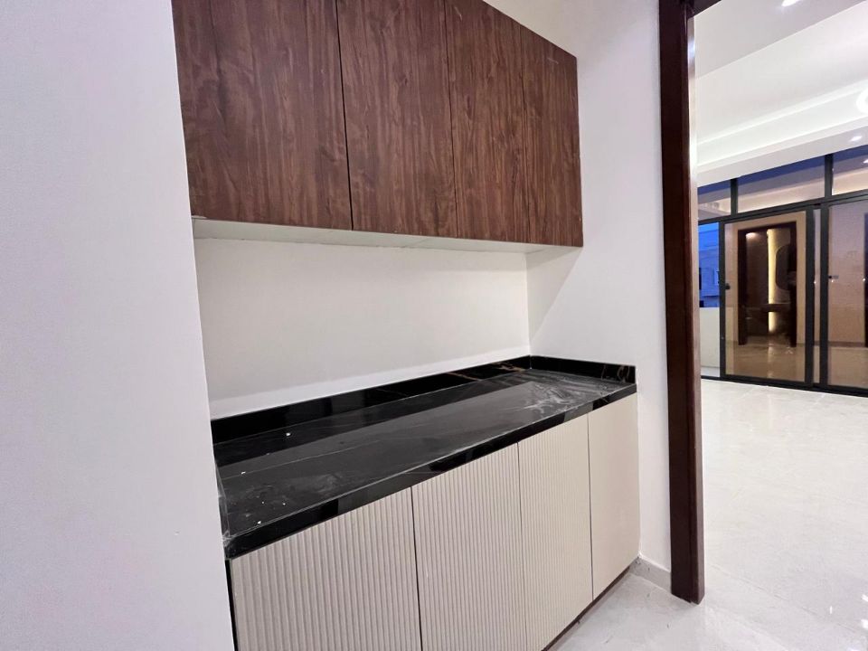 Spanning a generous 3700 square feet of land, the villa boasts a lush garden and beautifully designed living spaces. Thoughtfully crafted with luxurious touches, the property features a main and preparatory kitchen, a grand living room, and a spacious hall, complemented by an additional upper hall on the second floor. With five master bedrooms featuring built-in closets and an adjoining master maid's room, this home provides ample space for family or guests.