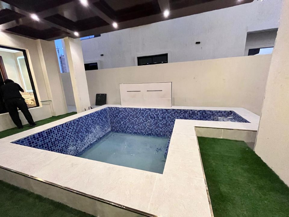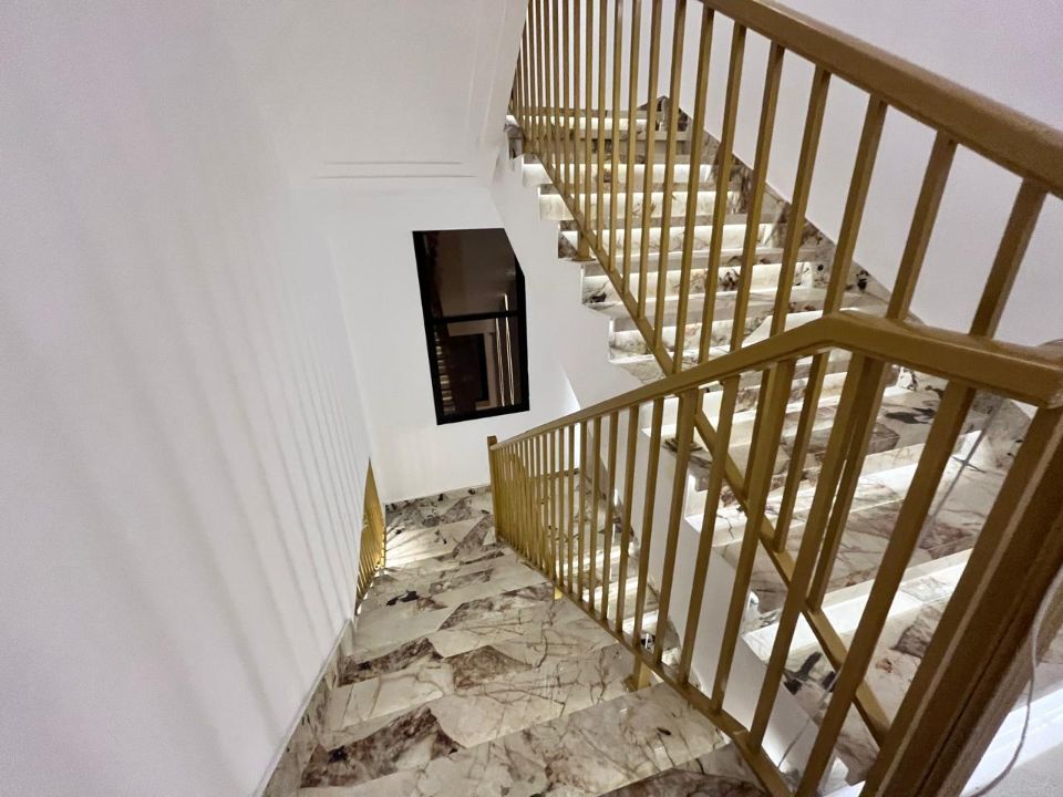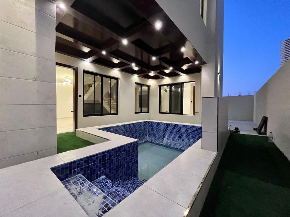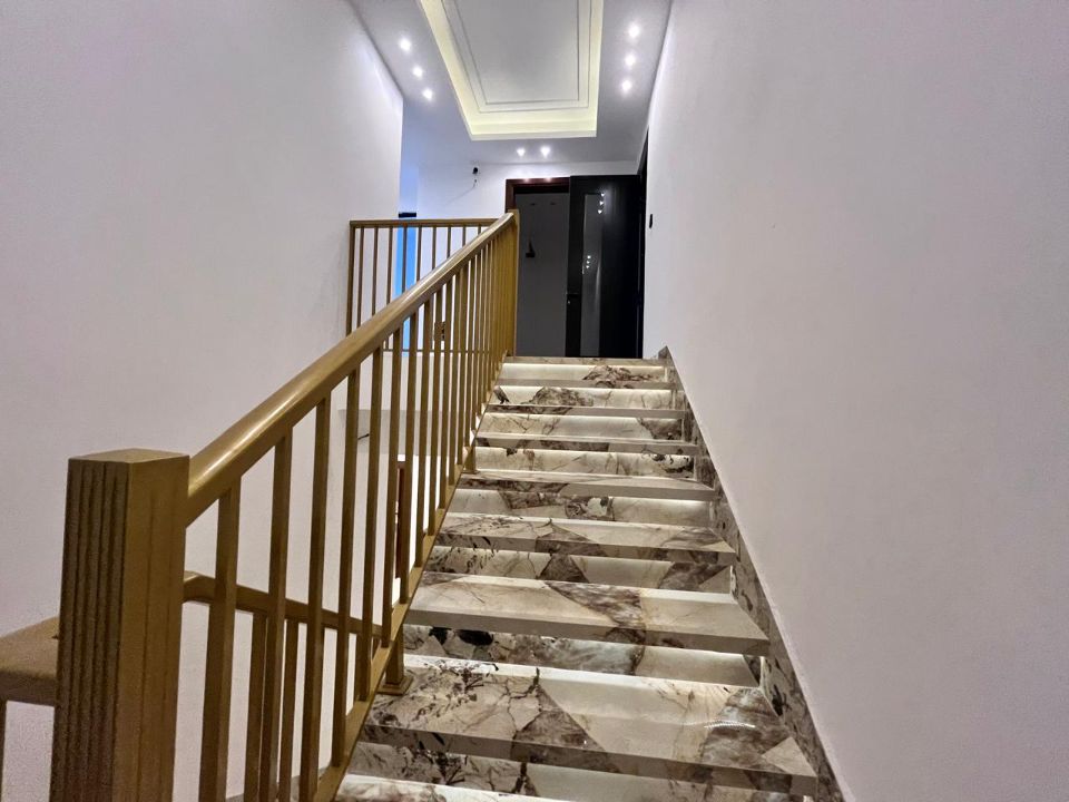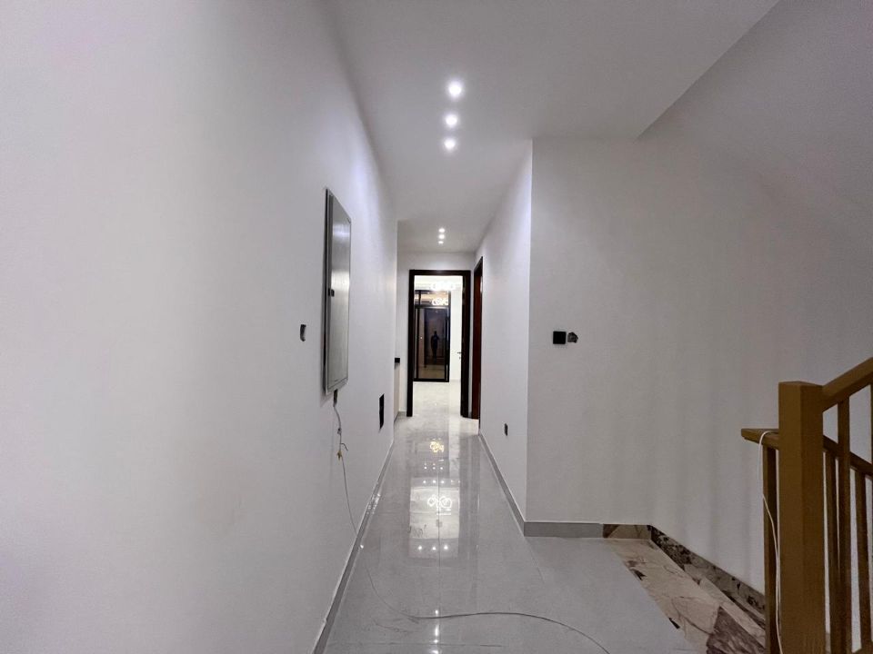 Spanning a generous 3700 square feet of land, the villa boasts a lush garden and beautifully designed living spaces. Thoughtfully crafted with luxurious touches, the property features a main and preparatory kitchen, a grand living room, and a spacious hall, complemented by an additional upper hall on the second floor. With five master bedrooms featuring built-in closets and an adjoining master maid's room, this home provides ample space for family or guests.