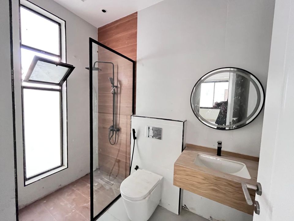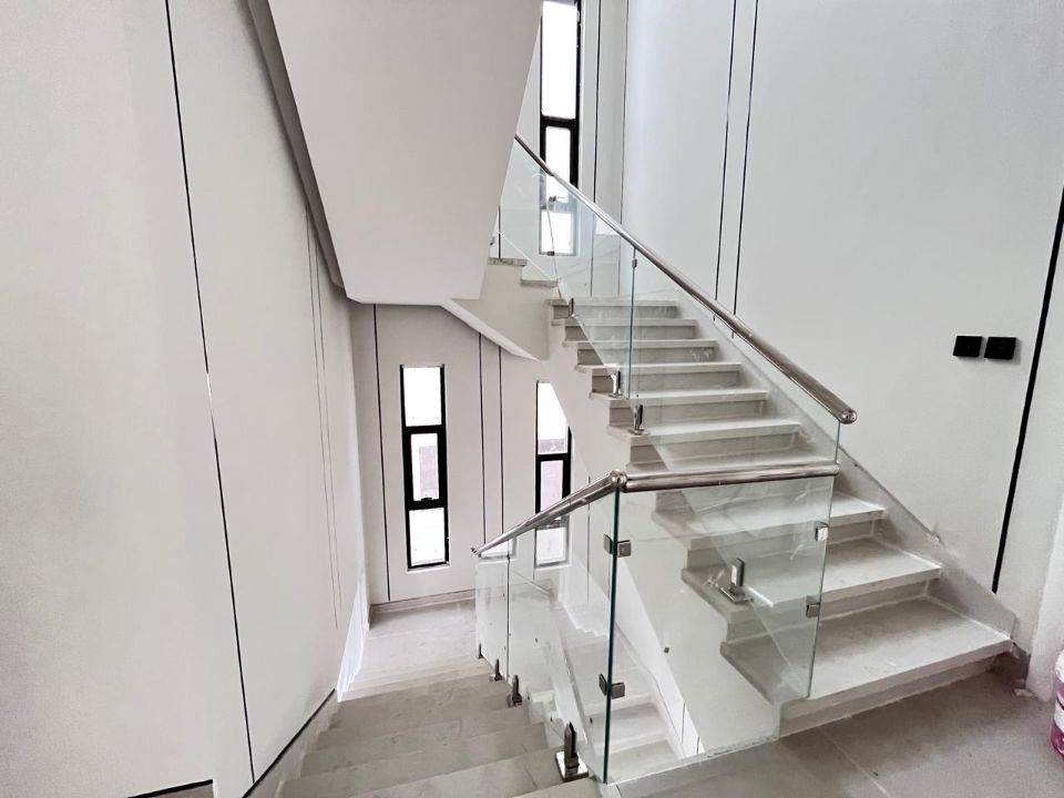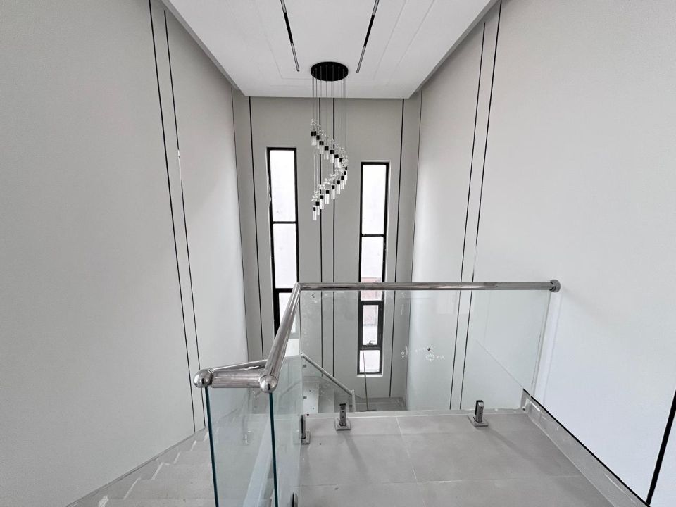 This sleek villa contains six well-sized bedrooms, all featuring floor-to-ceiling windows inviting copious amounts of natural light. Additionally, a private balcony off the main suite offers panoramic views of the city skyline. An open-plan living area, perfectly designed for today's contemporary lifestyle, connects the living room, dining area, and gourmet kitchen in a smooth, seamless fashion.