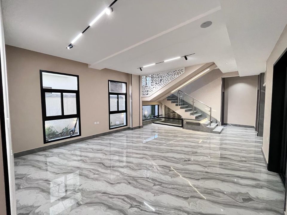 The villa also features a dry pantry, providing extra space for your kitchen supplies. Bathrooms are strategically located throughout the property, ensuring the utmost comfort and convenience for everyone. An elegant dining room awaits your gatherings, setting the perfect ambiance for shared meals and cherished moments. The TV lounge beckons you to unwind, making it an ideal spot for family movie nights.