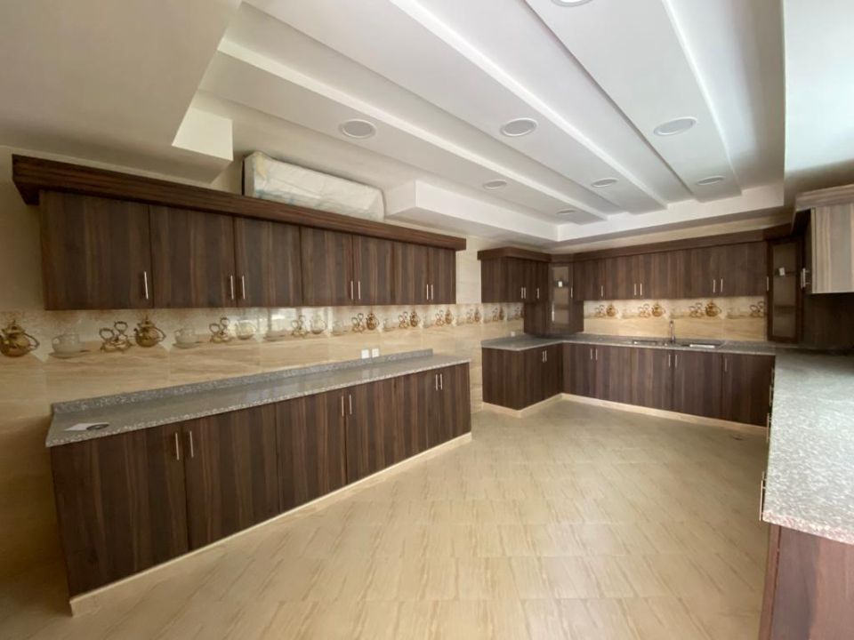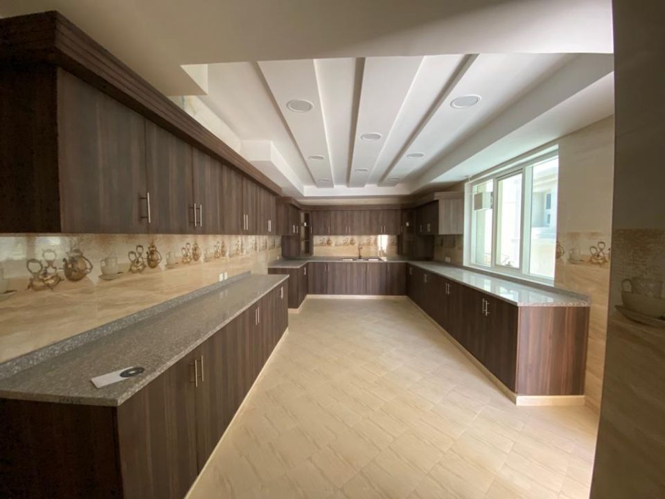 The villa’s ground floor is designed for the family's daily living needs. It comprises a guest bedroom with an attached bathroom. It also involves a modernized separate kitchen, a maid room with an attached bathroom, and a separate storeroom. The villa also has a significant extension in front of the property, providing additional outdoor space for family gatherings and events.