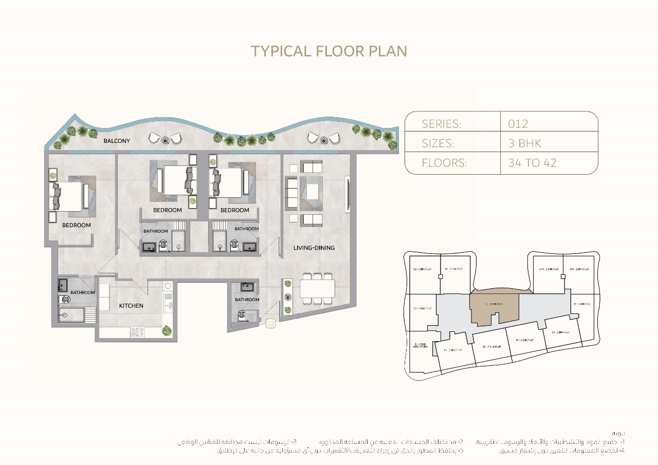 This 3 bedroom off plan apartment for sale at 1,123,000 makes it a completely new epitome of luxury. This 3-bedroom apartment stands out for its exceptional design and features include: