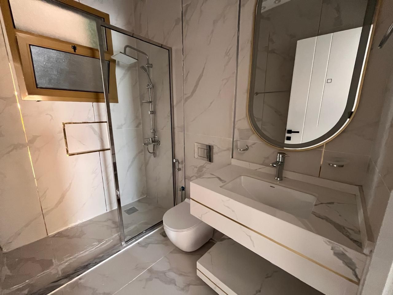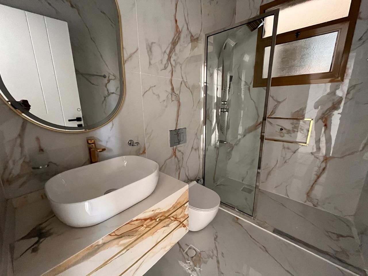 The townhouse boasts multiple bathrooms, including the master en-suite, a shared family bathroom, and a convenient powder room on the main floor. Each bathroom is tastefully designed with modern fixtures, quality materials, and ample storage space. These well-appointed bathrooms ensure both style and functionality.