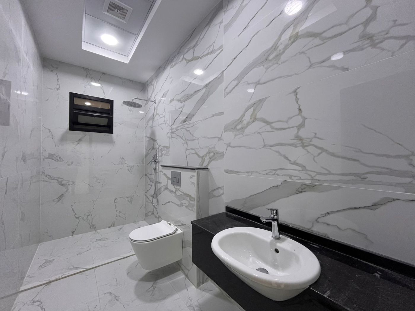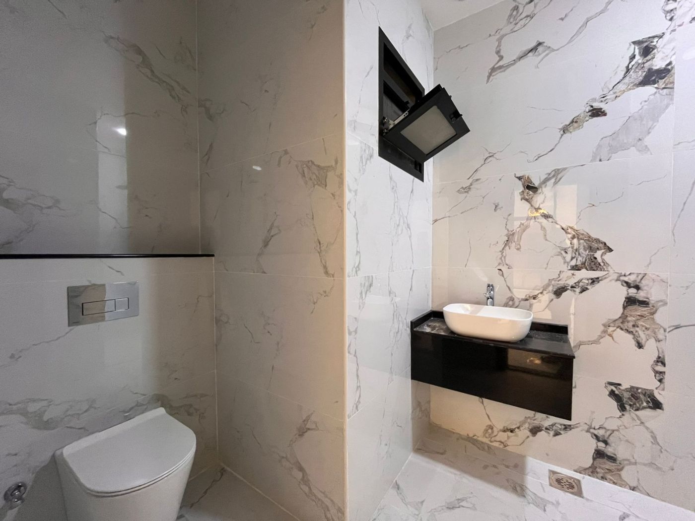 The townhouse boasts multiple bathrooms, including the master en-suite, a shared family bathroom, and a convenient powder room on the main floor. Each bathroom is tastefully designed with modern fixtures, quality materials, and ample storage space. These well-appointed bathrooms ensure both style and functionality.
