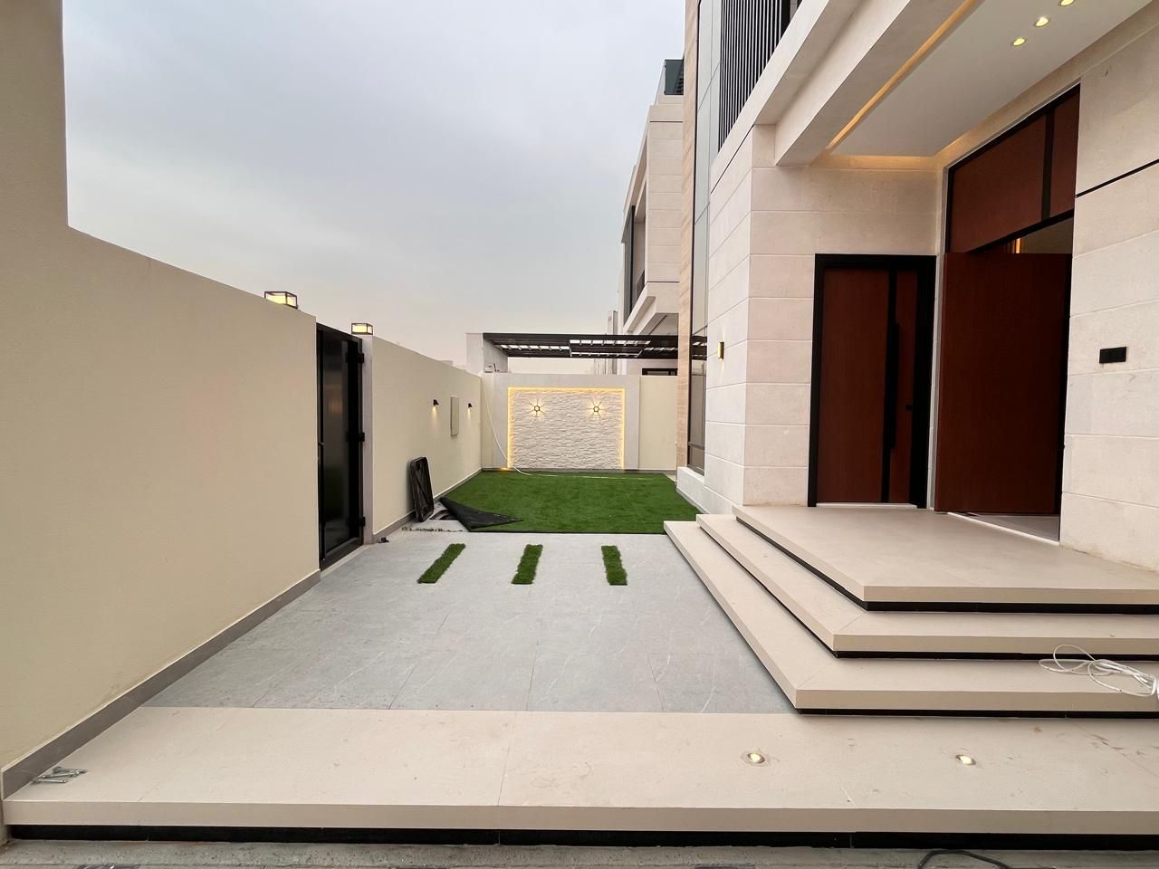 A well-designed outdoor garden welcomes visitors upon exiting the house. This peaceful sanctuary provides an ideal space for family entertainment, gardening, and leisure activities. Natural vegetation surrounds the garden inside a well-designed space that provides space for dining with kids or relaxation after work. The location is ideal for creating precious memories with your dearest family members.