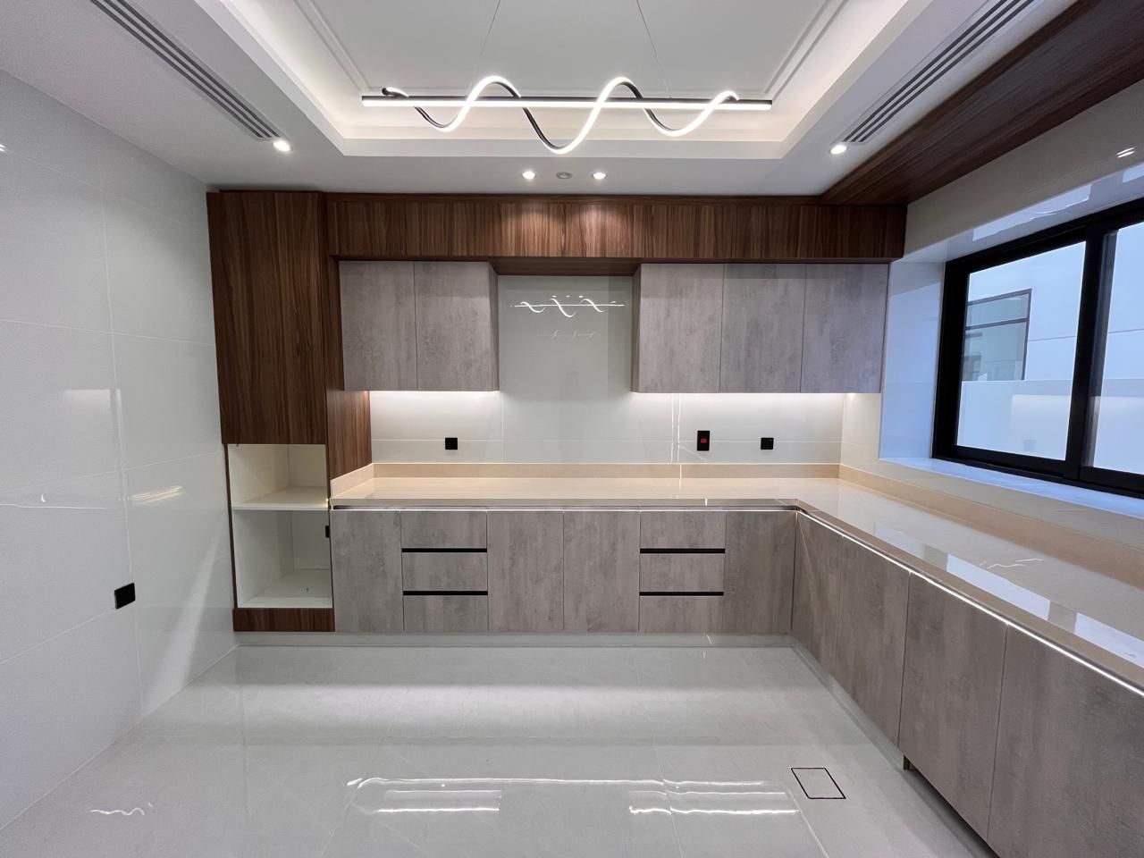 The elegant kitchen in the house, which is furnished with luxurious electronics that blend functionality and elegance, will be appreciated by food enthusiasts. The spacious kitchen work area and ample storage possibilities make cooking a delightful experience. This space functions successfully through its complex planning format while offering a pleasing visual appeal for communication between family members and visitors.