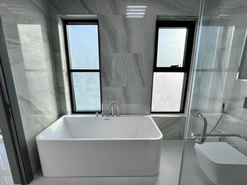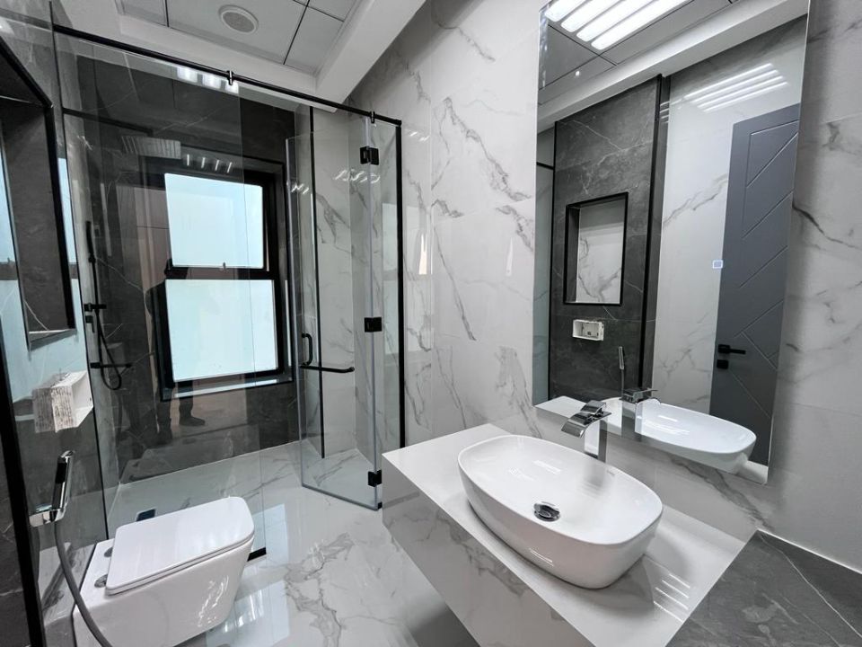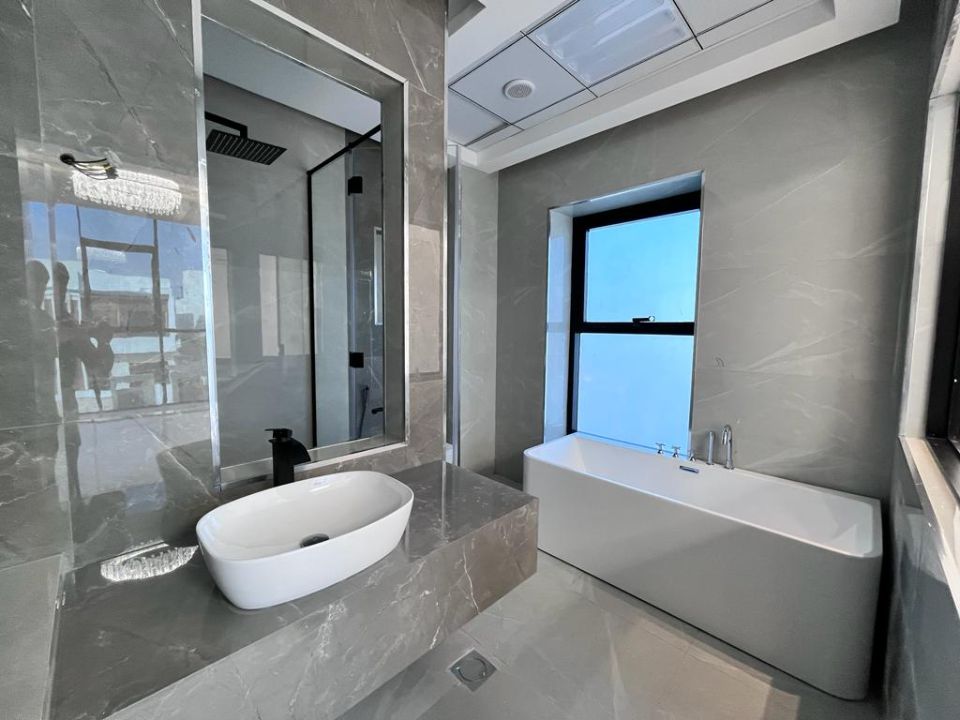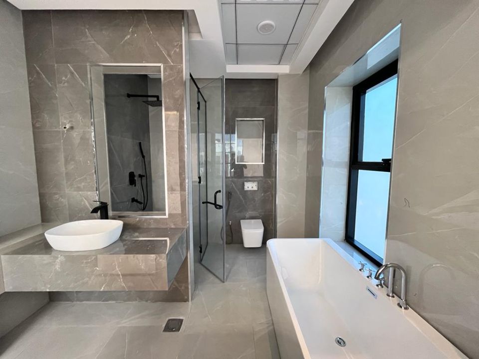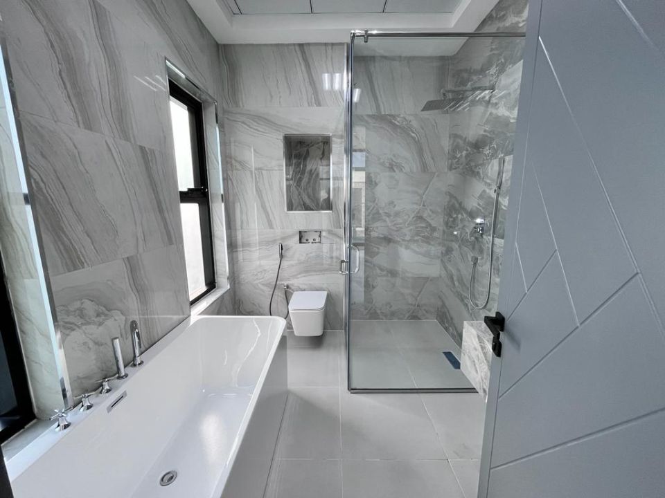 A luxurious villa wouldn't be complete without elegantly designed bathrooms. The property showcases pristine baths, accentuating the overall opulence of the villa. The living experience here is further elevated by the presence of a dining room, ideal for sharing moments with family and friends over delectable meals. A cozy TV lounge awaits to indulge you in relaxation and entertainment.