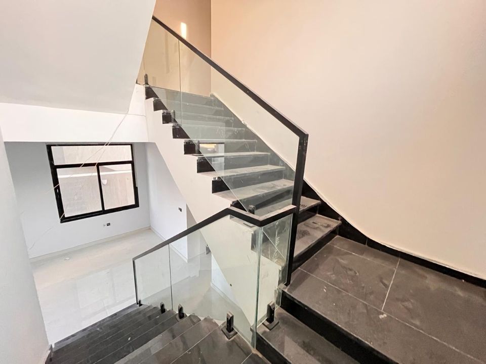 This sleek villa contains six well-sized bedrooms, all featuring floor-to-ceiling windows inviting copious amounts of natural light. Additionally, a private balcony off the main suite offers panoramic views of the city skyline. An open-plan living area, perfectly designed for today's contemporary lifestyle, connects the living room, dining area, and gourmet kitchen in a smooth, seamless fashion.