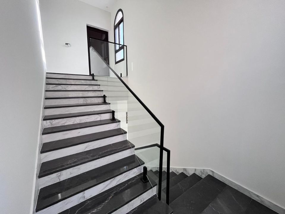 This villa comprises six bedrooms designed to offer comfort and relaxation. The master suite features a private wellness area with a sauna and a soaking tub with panoramic views, while the open-plan layout includes a state-of-the-art fitness room and a dedicated yoga room.