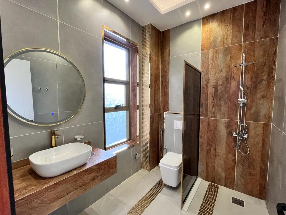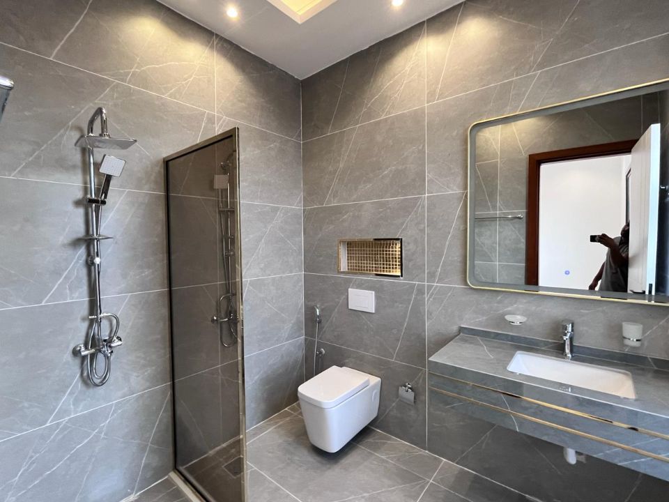 Step inside to find a well-designed layout that offers both space and privacy. The ground floor boasts a guest bedroom, providing ease and comfort for visiting family and friends. Ascend to the first floor, where four additional bedrooms await, each exuding a tranquil ambiance that promotes relaxation and tranquility.