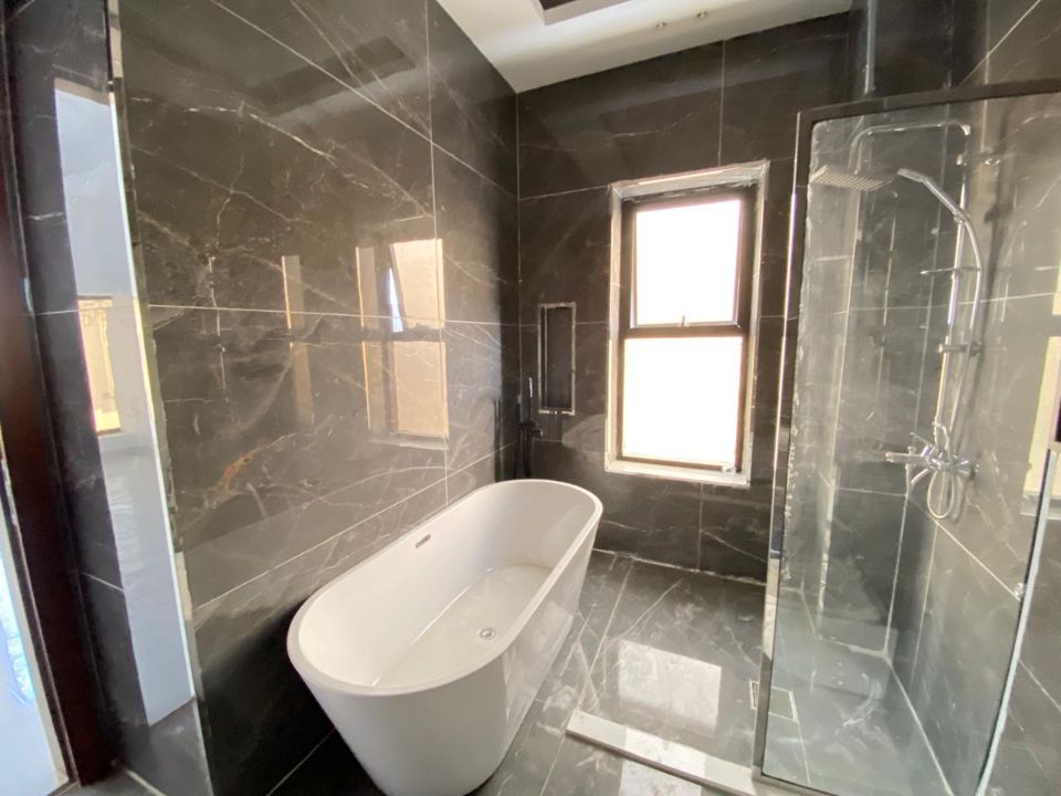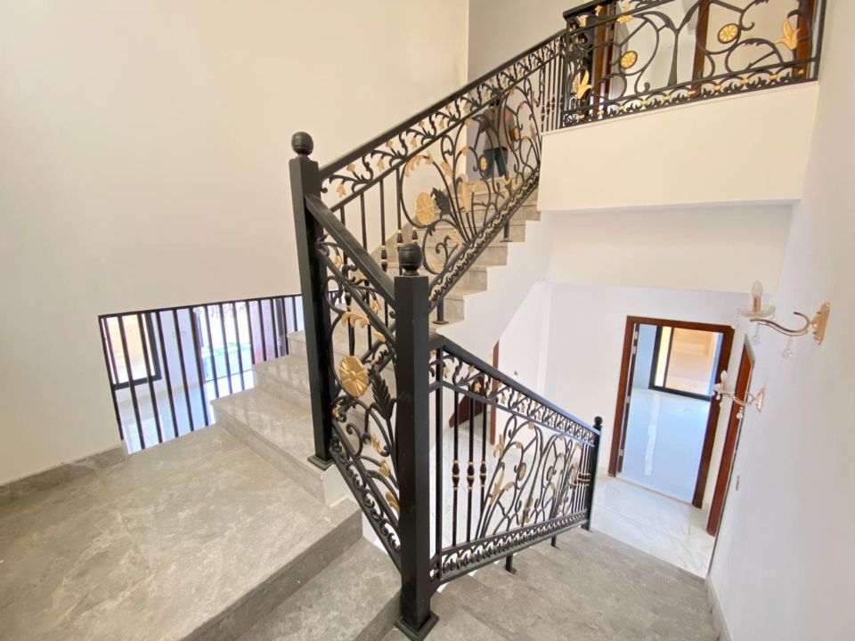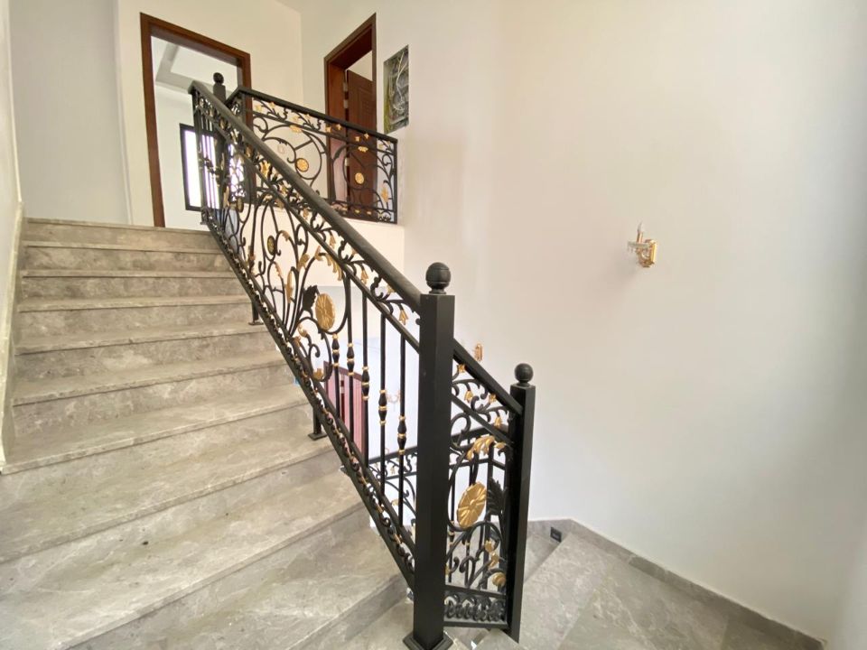 As you enter this magnificent villa, a carefully designed layout unfolds, emphasizing accessibility and privacy. The ground floor gracefully accommodates a guest bedroom, ensuring a welcoming space for visitors. This thoughtful design choice allows for easy navigation and privacy for residents and guests alike. Ascend to the first floor, where 4 additional bedrooms await, each providing a serene retreat for family members.