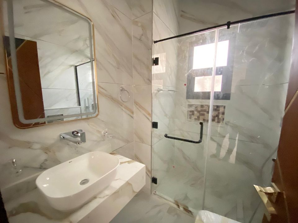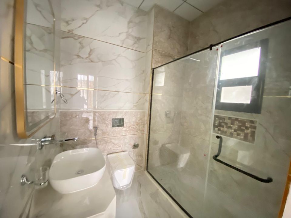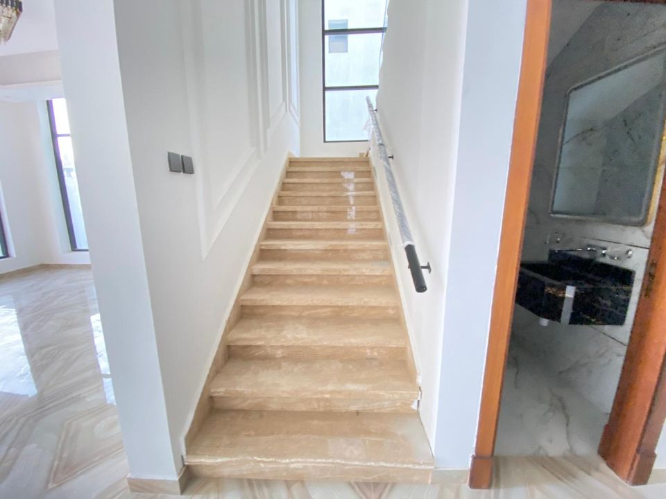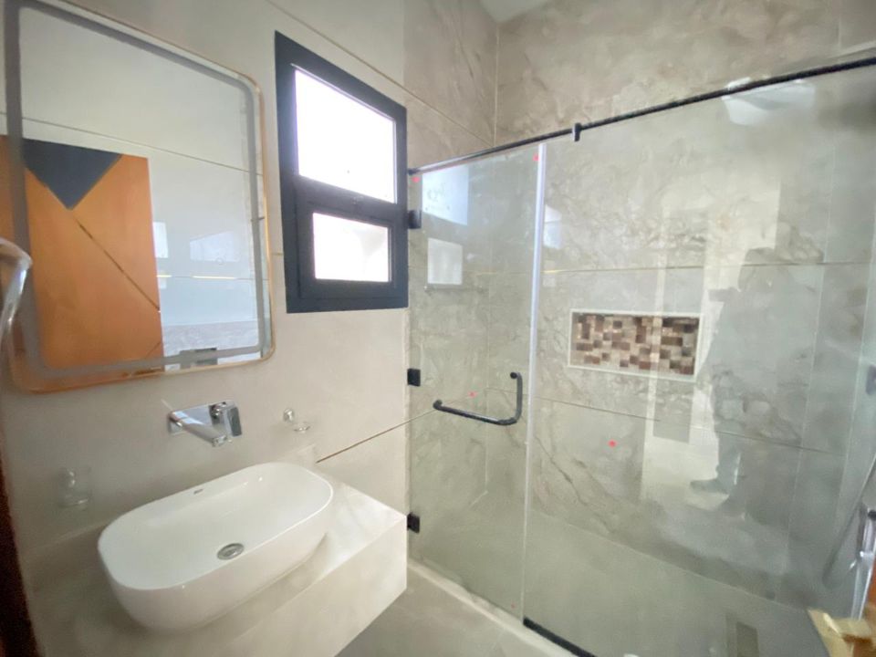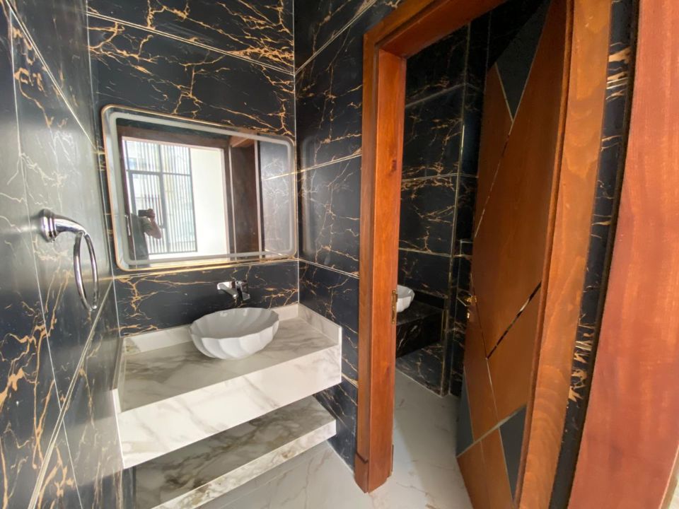 Elegantly designed bathrooms showcase pristine baths, accentuating the overall luxury of the villa. The living experience is further elevated by a dining room, ideal for sharing moments with family and friends over delectable meals. A cozy TV lounge awaits you to indulge in relaxation and entertainment.