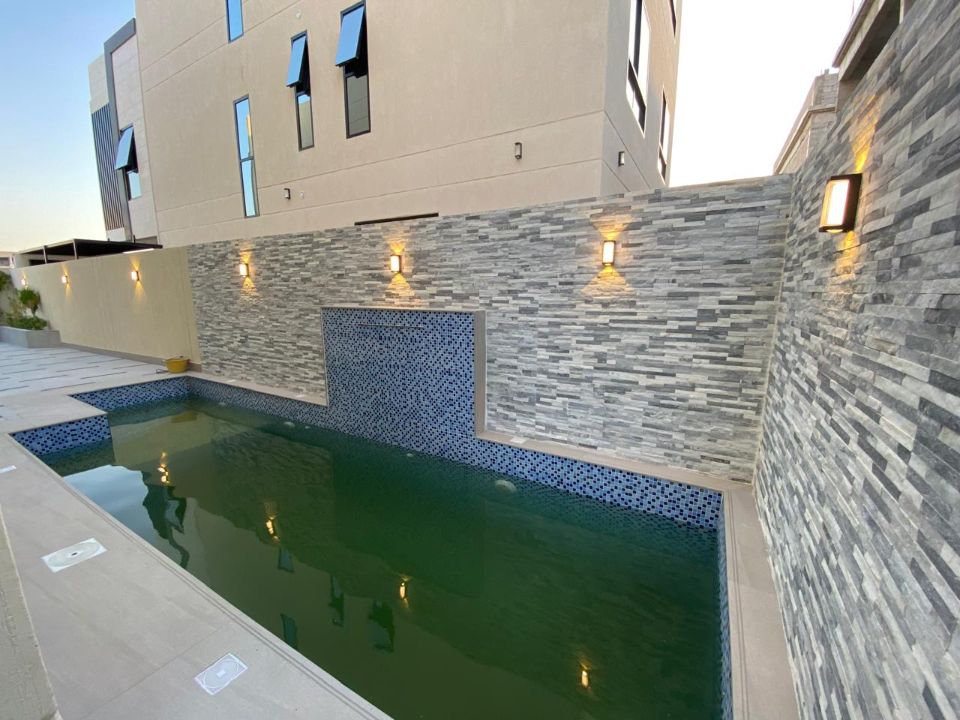 Ground Floor: 1 bedroom, hall, majlis with swimming pool, kitchen, and maid’s room.