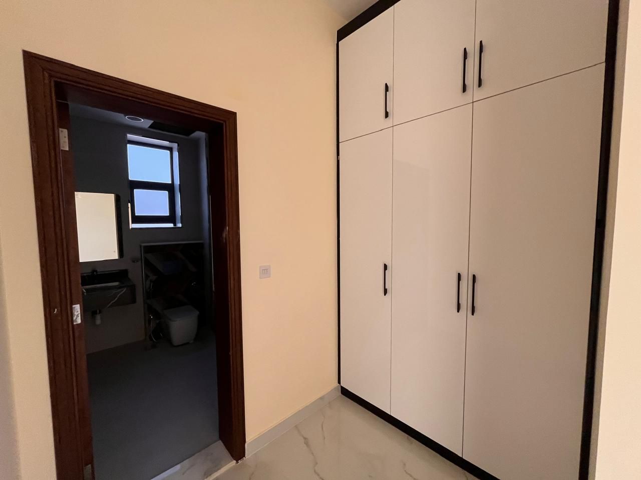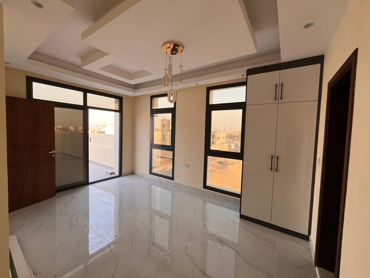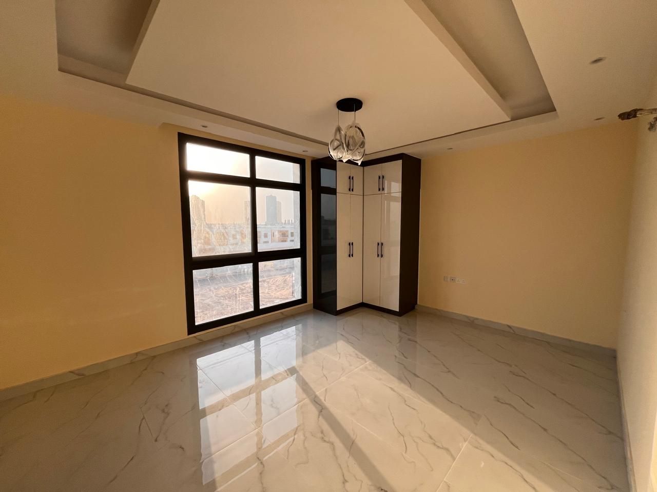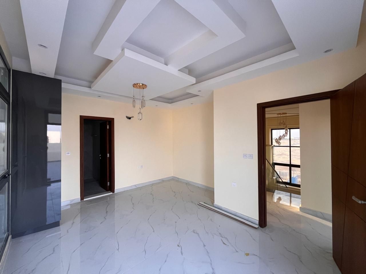 This villa for sale in Al Helio Ajman features six luxurious bedrooms, each with an ensuite bathroom for convenience and privacy. These built-in wardrobes are okay for maximized storage, but do not disturb that sleek, clutter-free appearance.