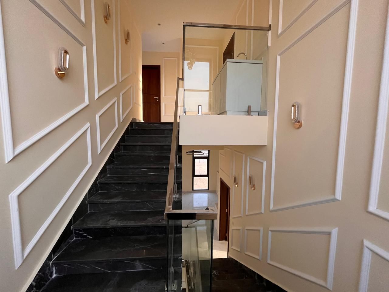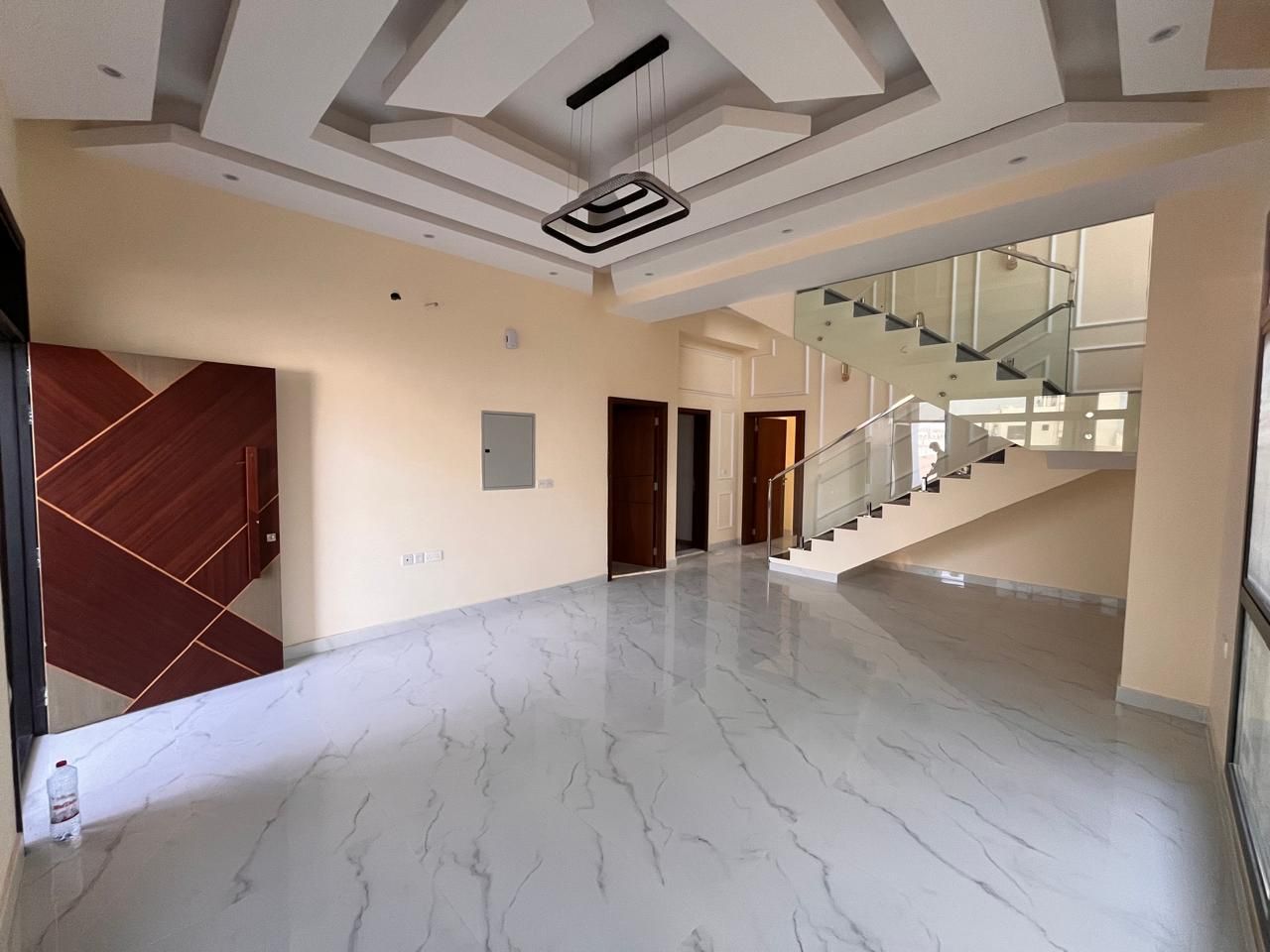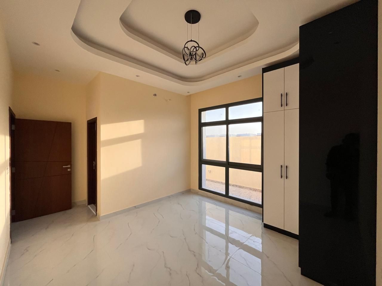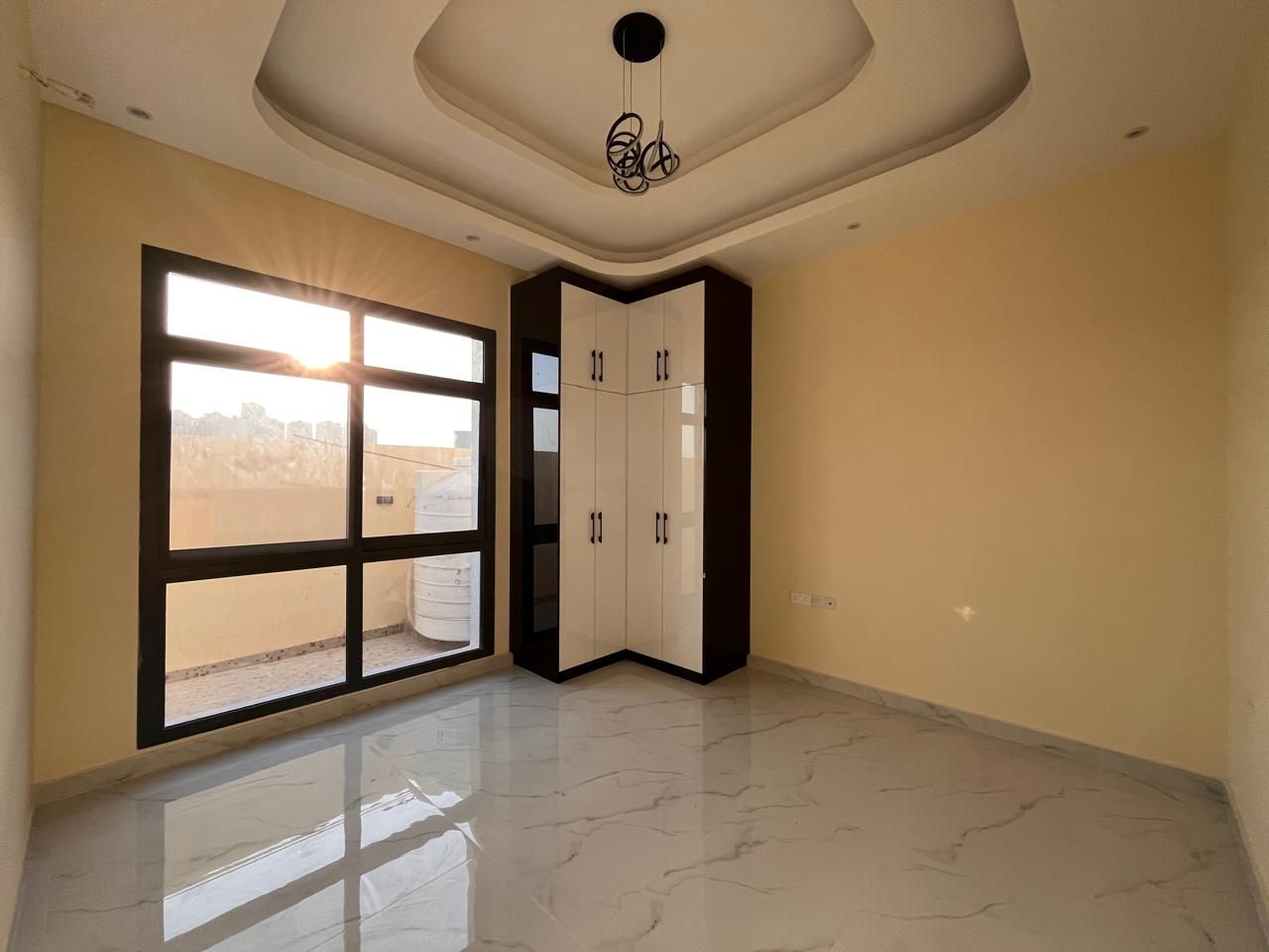 This villa for sale in Al Helio Ajman features six luxurious bedrooms, each with an ensuite bathroom for convenience and privacy. These built-in wardrobes are okay for maximized storage, but do not disturb that sleek, clutter-free appearance.