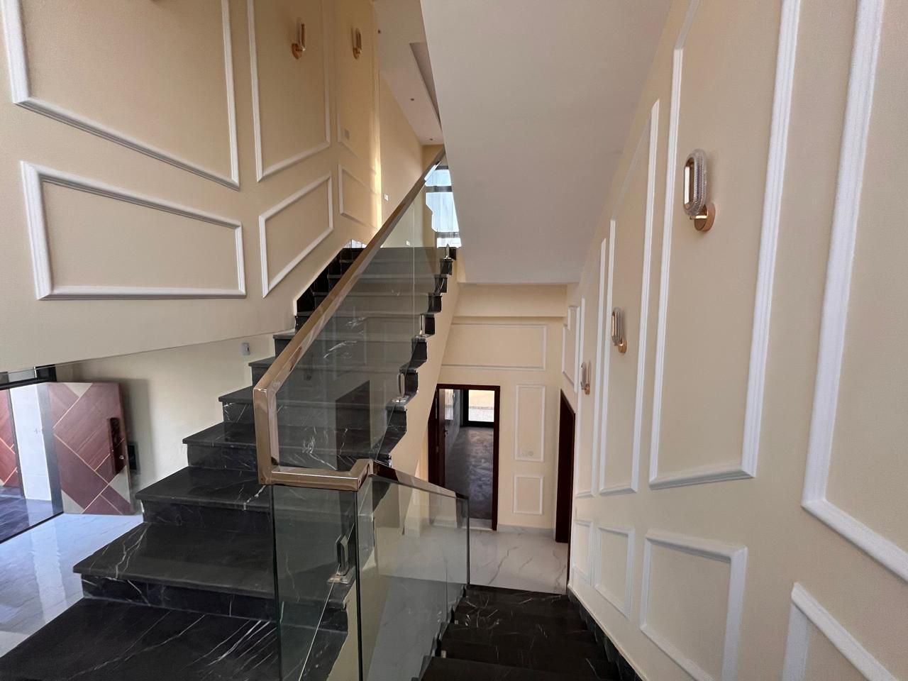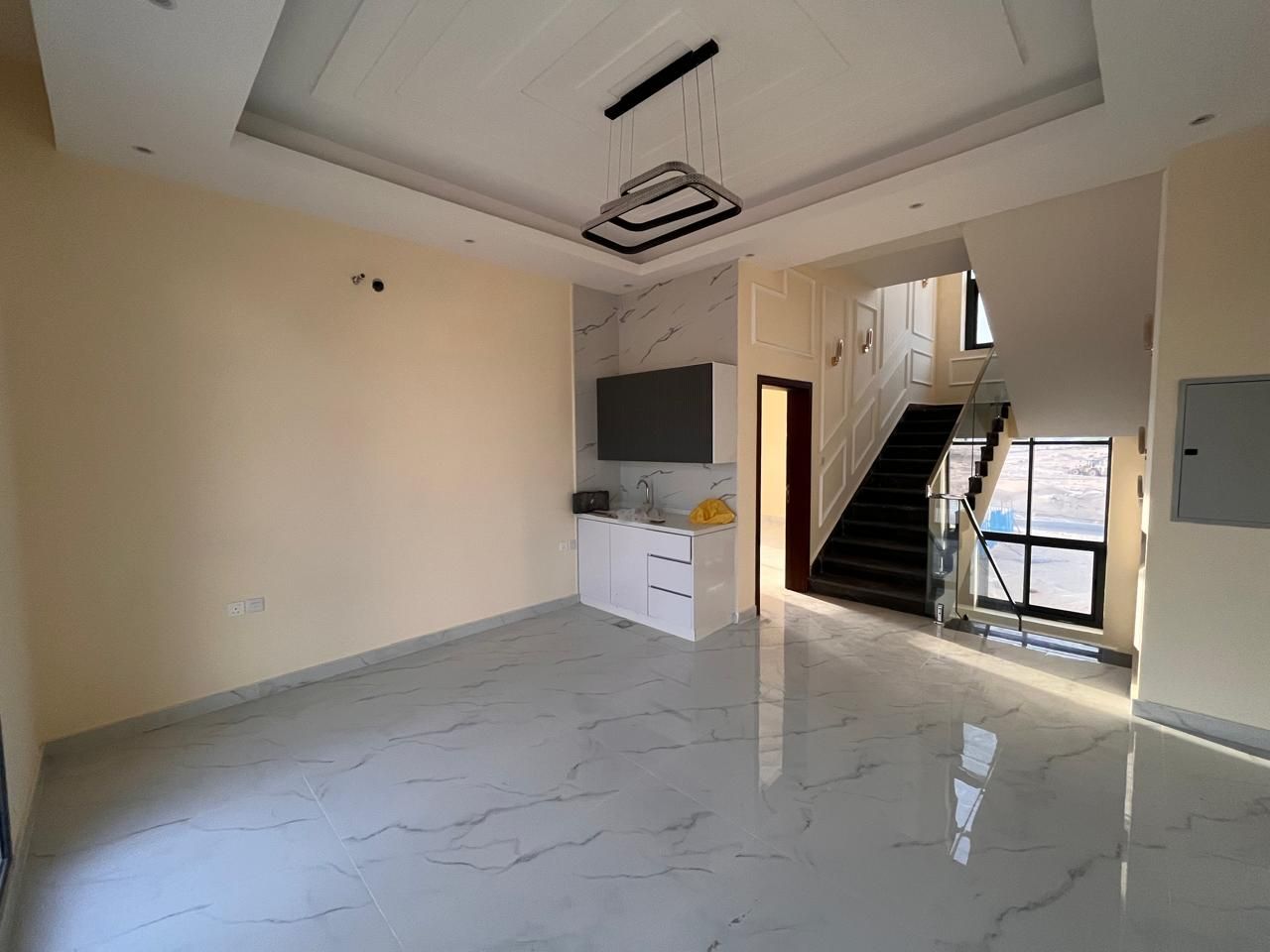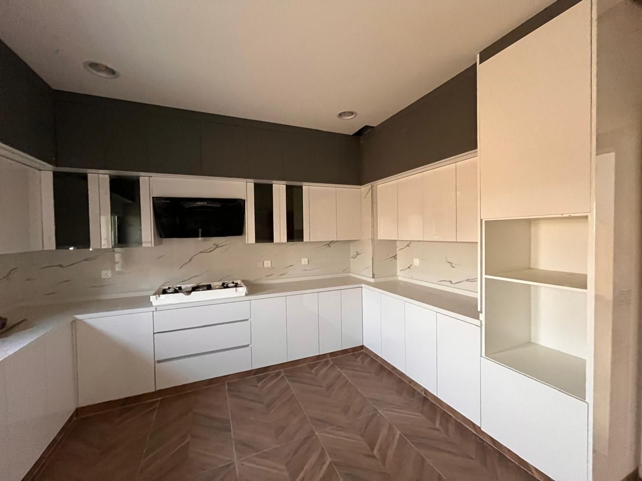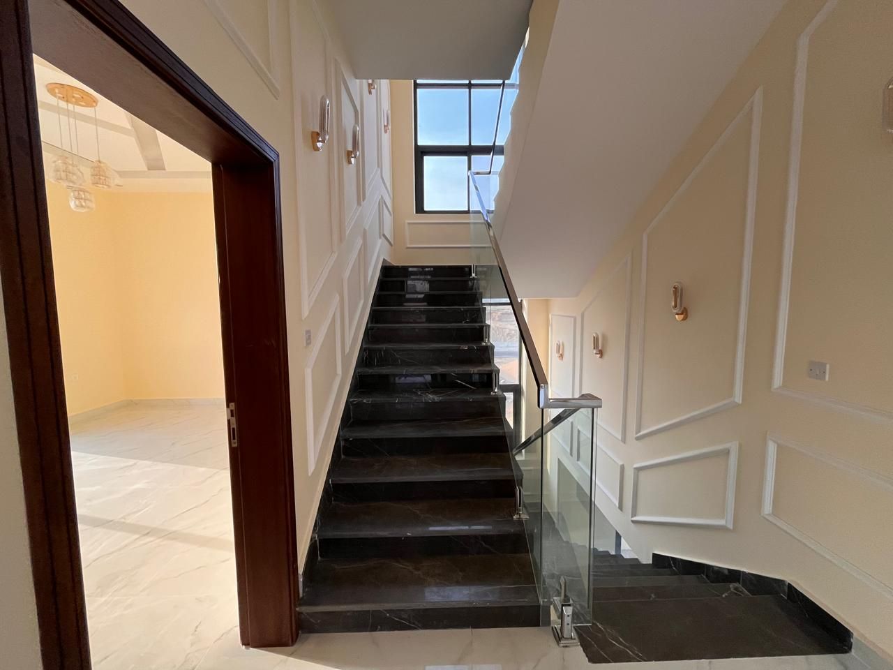 This villa for sale in Al Helio Ajman features six luxurious bedrooms, each with an ensuite bathroom for convenience and privacy. These built-in wardrobes are okay for maximized storage, but do not disturb that sleek, clutter-free appearance.