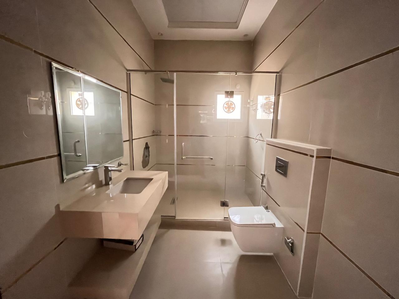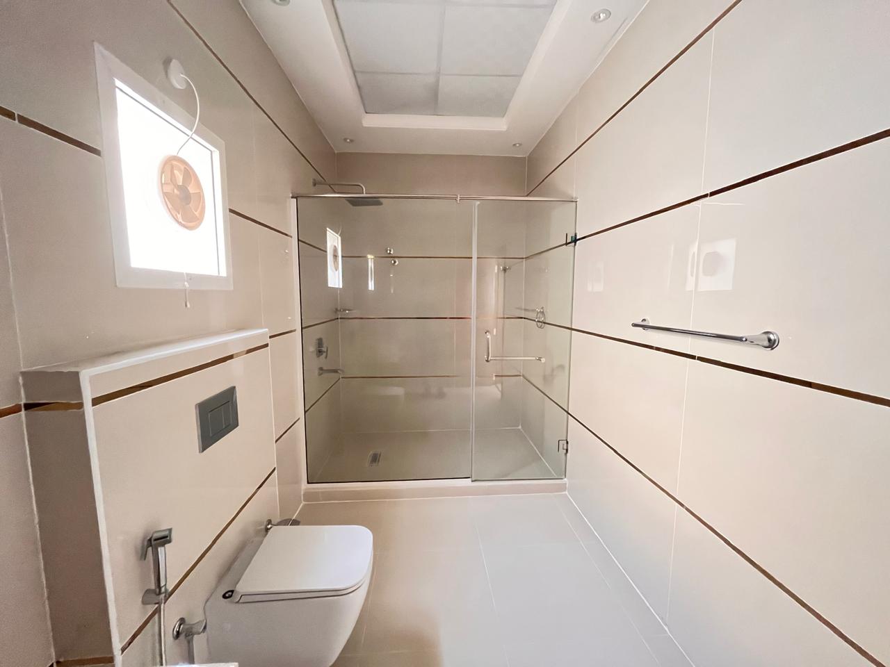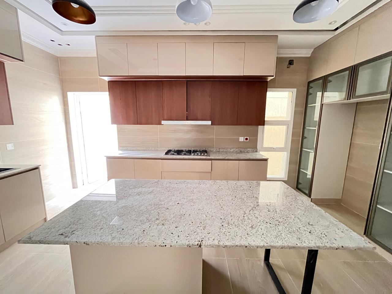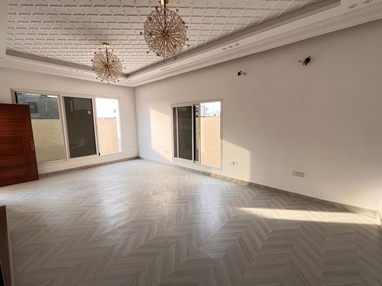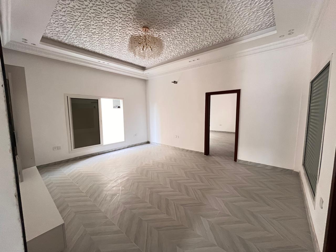 The villa features a large open hall and a separate, large majlis, ideal for family gatherings and hosting guests. It includes a big modern kitchen, a maid's room, 7 spacious bathrooms, and well-planned interiors, making it suitable for large households. The property features gypsum ceilings, chandeliers, balconies, split AC, and a comfortable lounge area, offering both style and functionality.