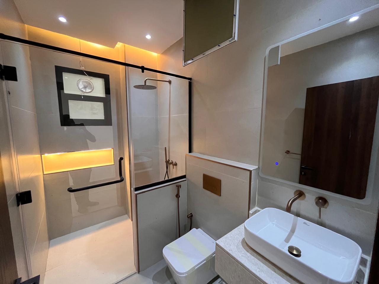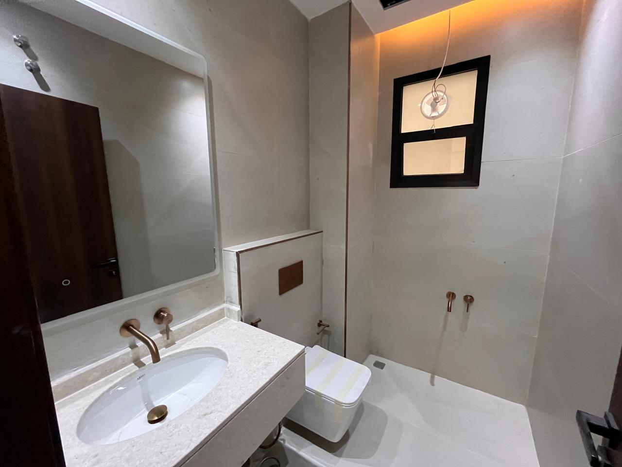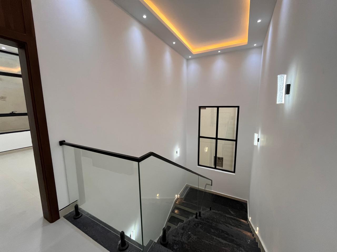 The villa has five en-suite bedrooms, a contemporary kitchen, a large living and dining space, and a maid’s room. Other features are personal parking, gardens, a balcony, and a terrace. The architecture also creates a roomy and light ambience in the house.