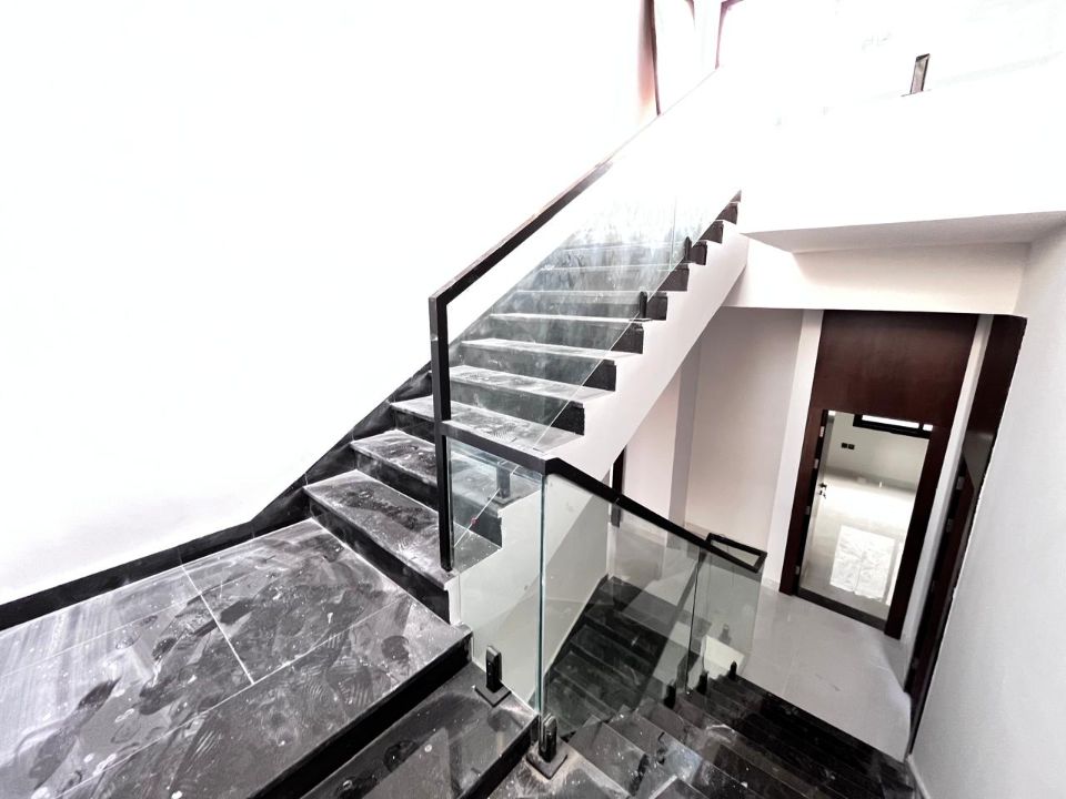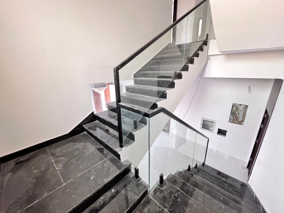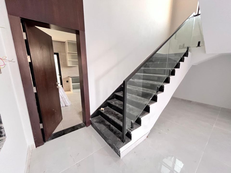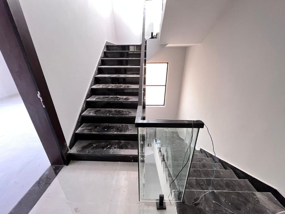 Spanning a generous 3400 square feet of land, the villa boasts a lush garden and beautifully designed living spaces. Thoughtfully crafted with luxurious touches, the property features a central and preparatory kitchen, a grand living room, and a spacious hall, complemented by an additional upper hall on the second floor. With five master bedrooms featuring built-in closets and an adjoining master maid's room, this home provides ample space for family or guests.