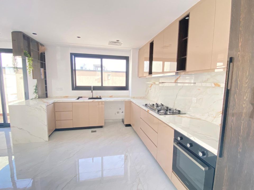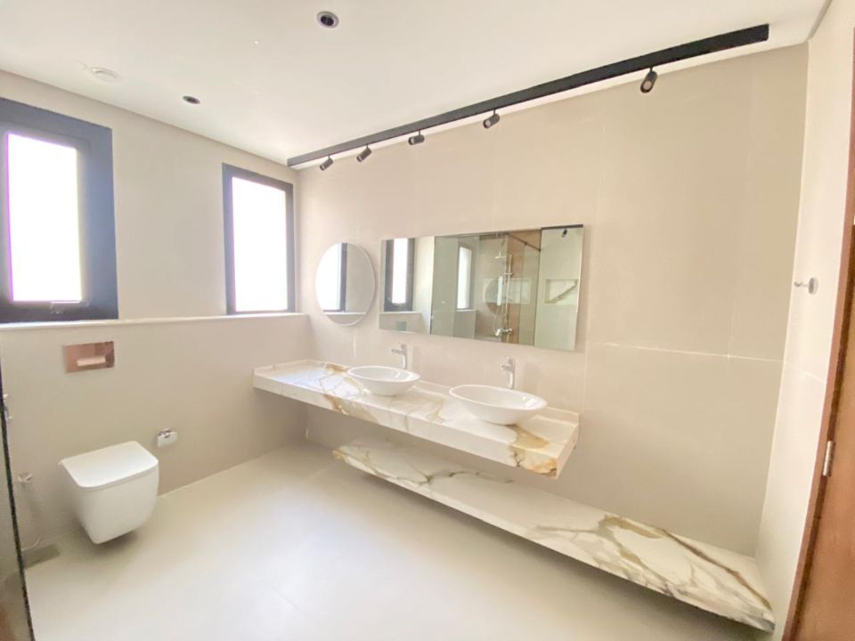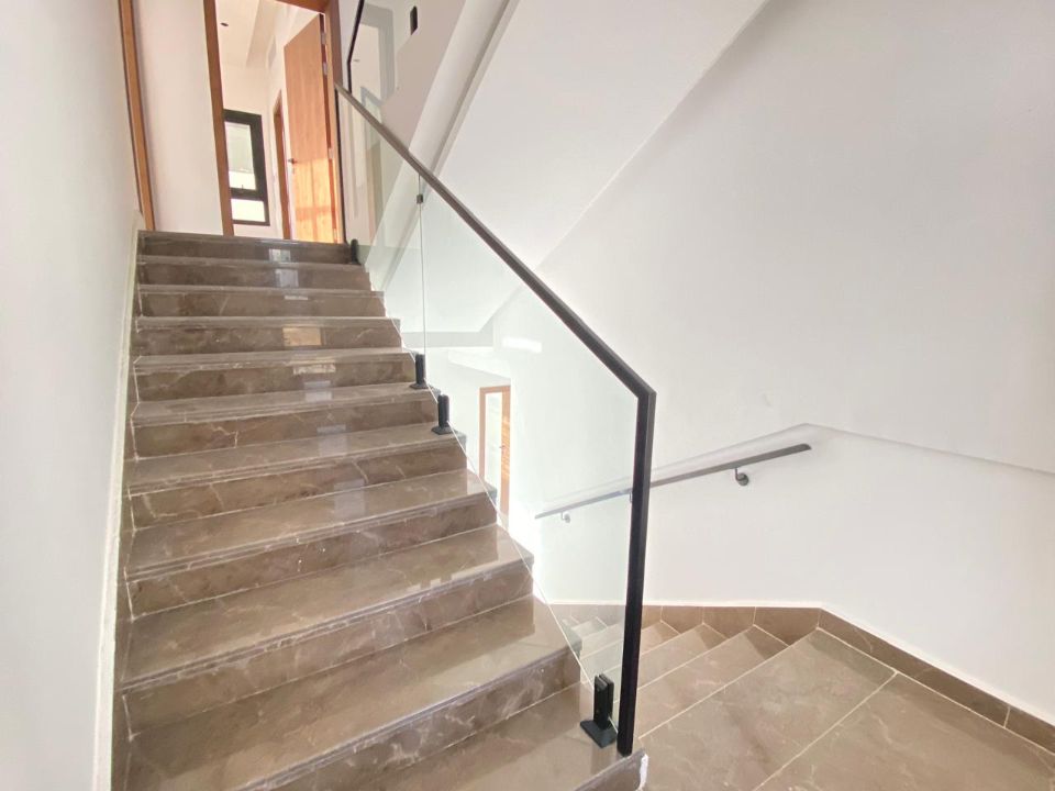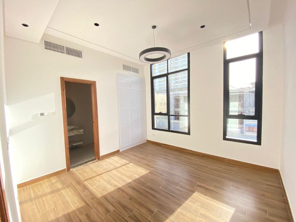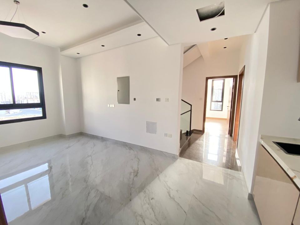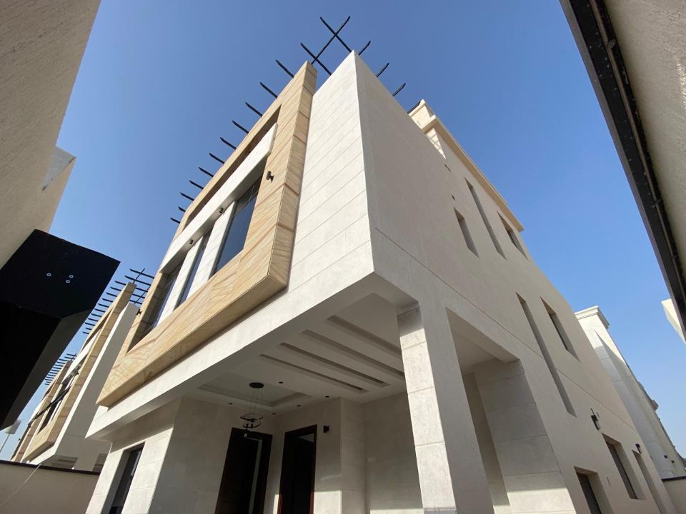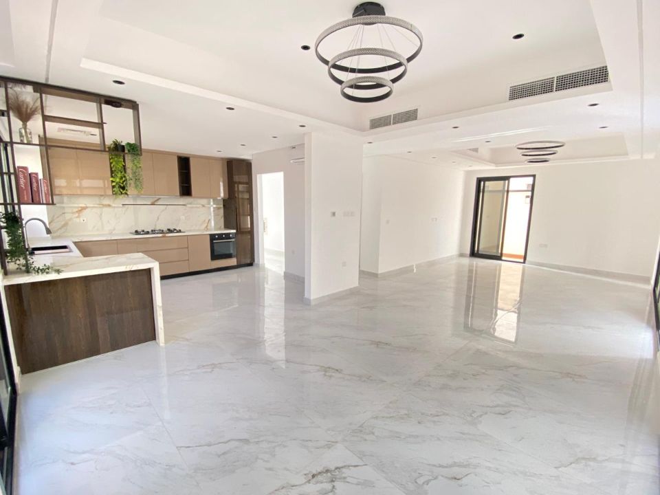Step inside to find a meticulously designed residence featuring 5 bedrooms and 6 bathrooms, complemented by an open kitchen, a spacious hall, and a Majlis. Additionally, a maid's room adds convenience to this luxurious abode. Crafted with attention to detail, this villa boasts gypsum ceilings, central air conditioning, wardrobes, and chandeliers throughout. Enjoy the convenience of two pantries and the relaxation offered by small lounges and trees spread across the property's three stories.
