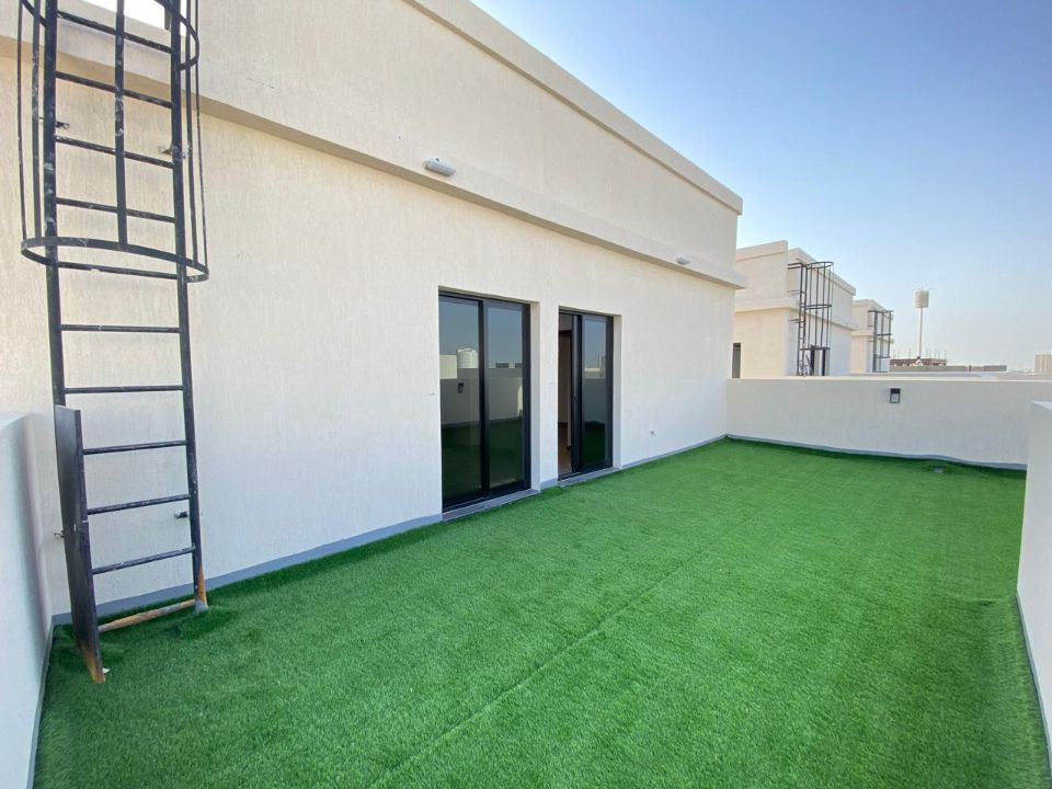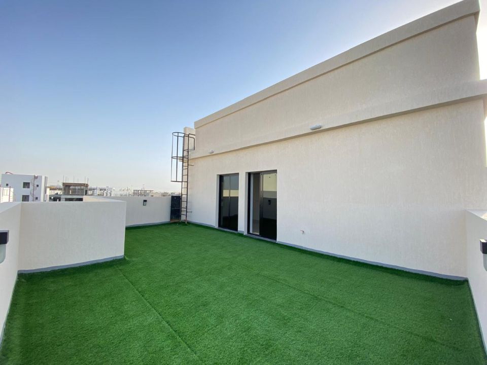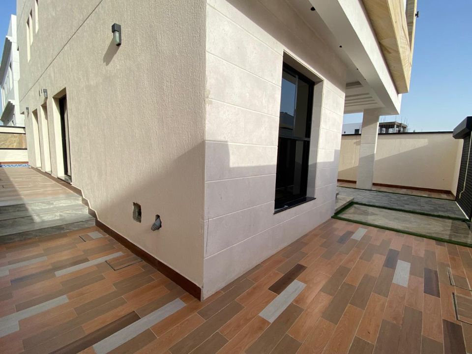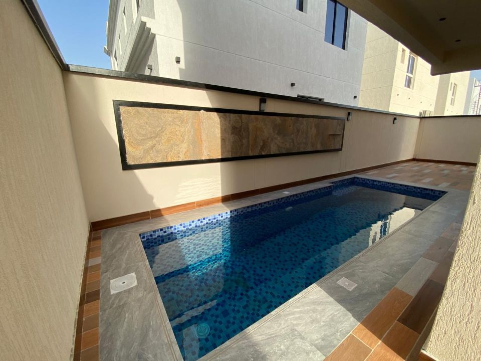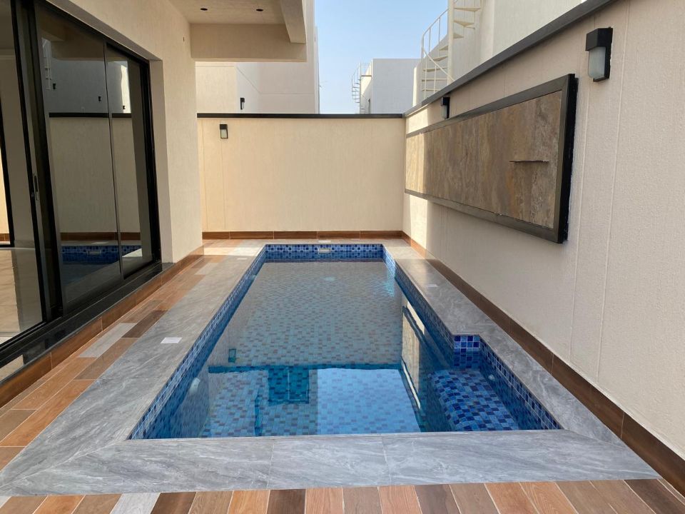 Outside and inside, vast spaces beckon for leisure and entertainment. The villa features a ground floor Majlis and a large hall, while the first floor comprises three bedrooms and the second floor offers two bedrooms, providing ample space for all your needs. Additional highlights include a bathtub in one of the bedrooms and a large swimming pool, perfect for cooling off on hot days.