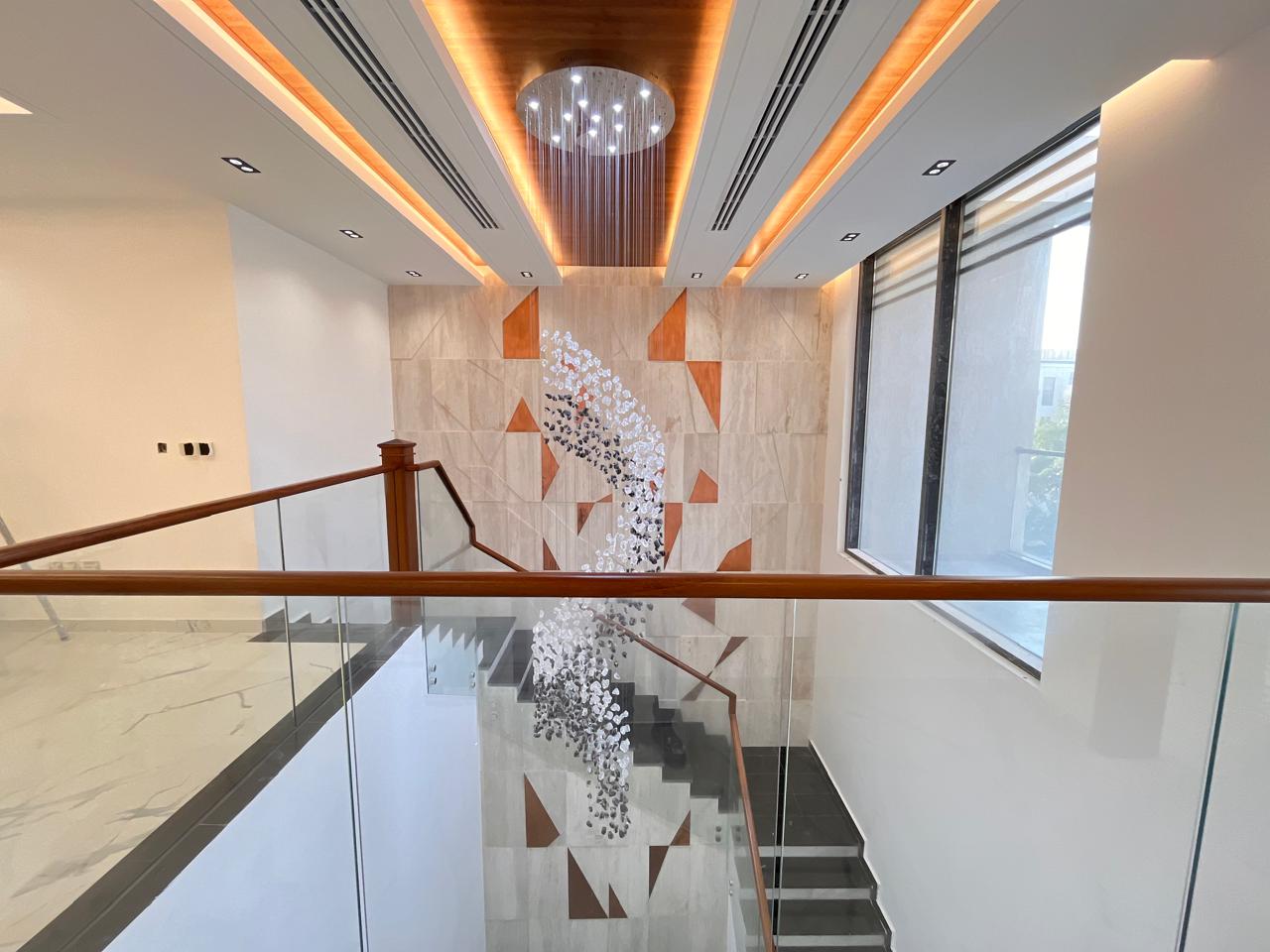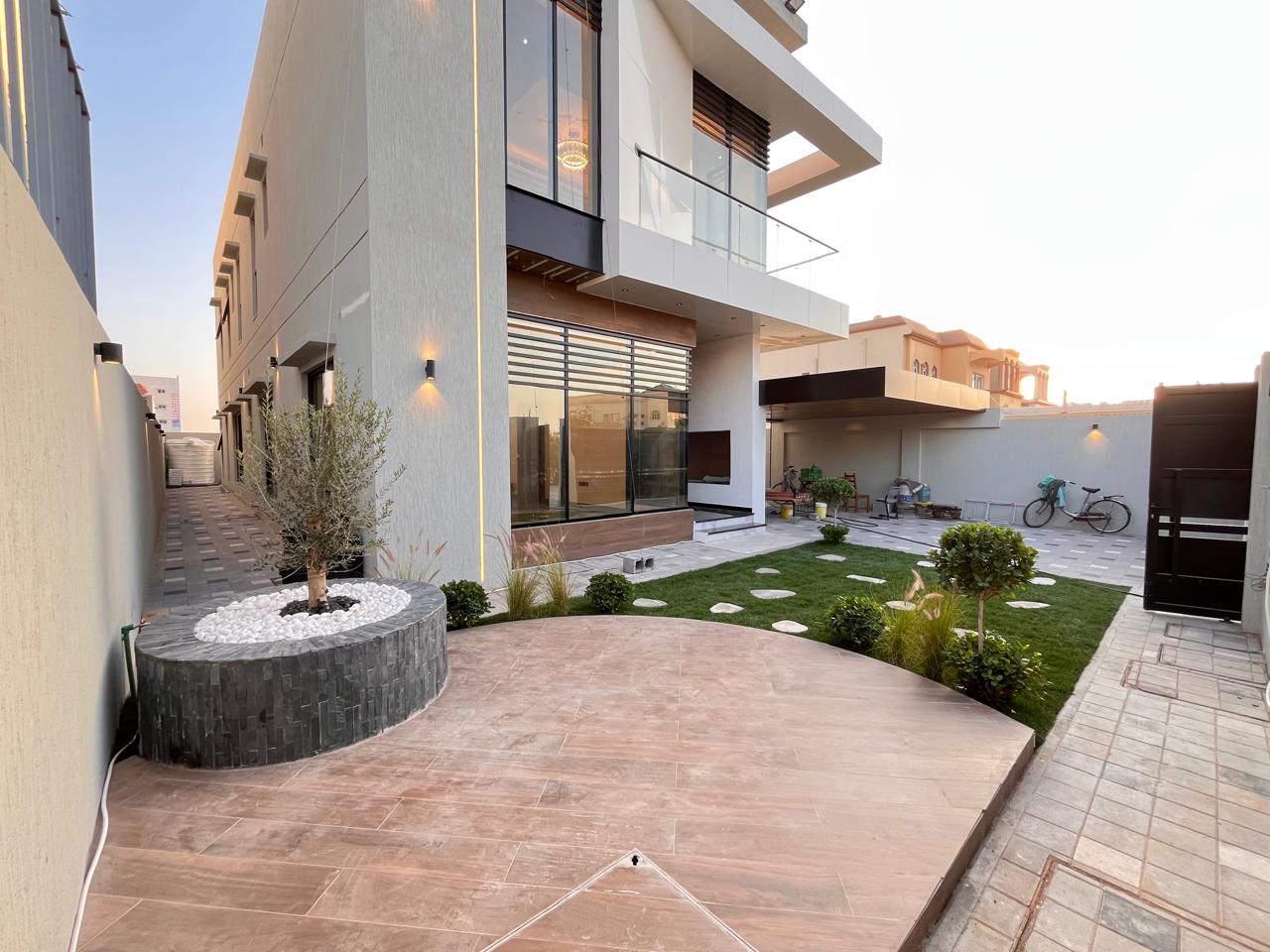The villa offers 5 bedrooms, 7 bathrooms, a large family hall, and a separate spacious majlis, providing an ideal balance between everyday living and guest hospitality. It includes a big kitchen, a maid’s room, a pantry, and a large lounge suitable for family gatherings. Balconies add openness and natural light to the upper floor.