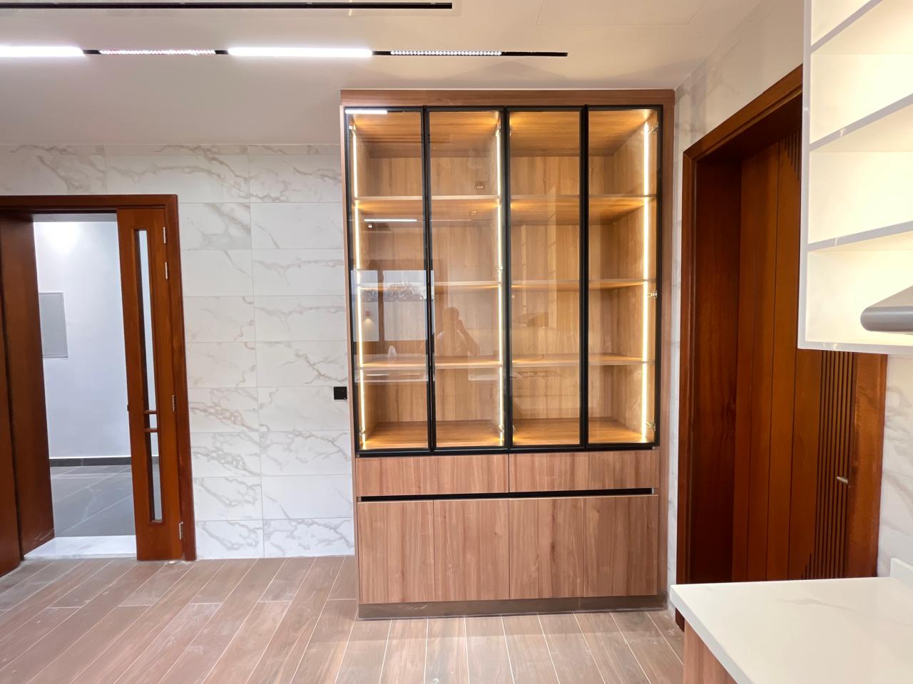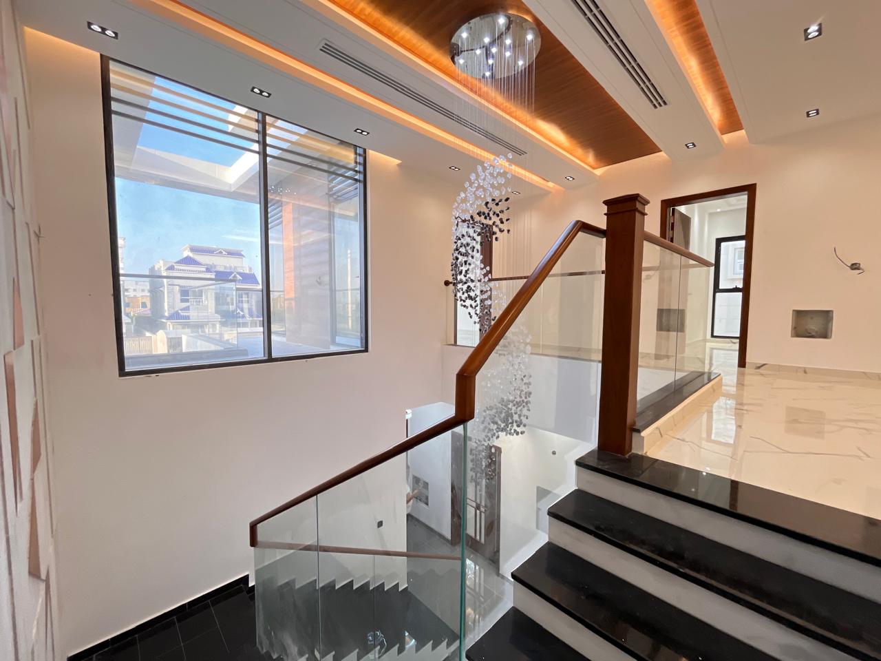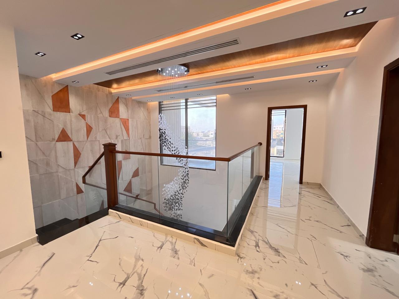 The villa includes gypsum ceilings, chandeliers, built-in wardrobes, balconies, and central air conditioning.