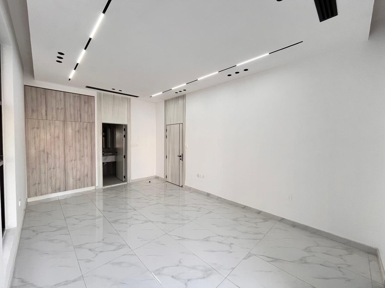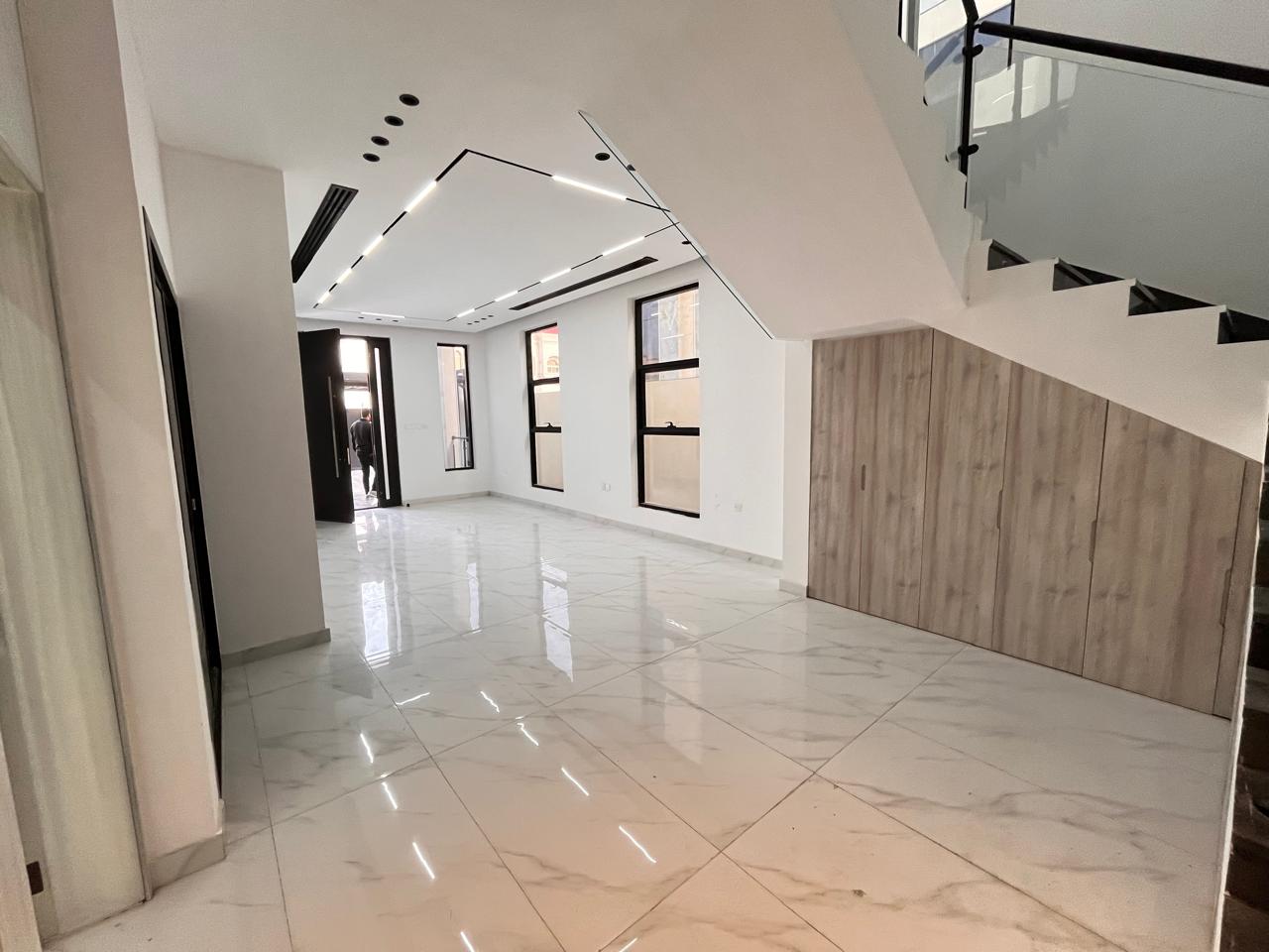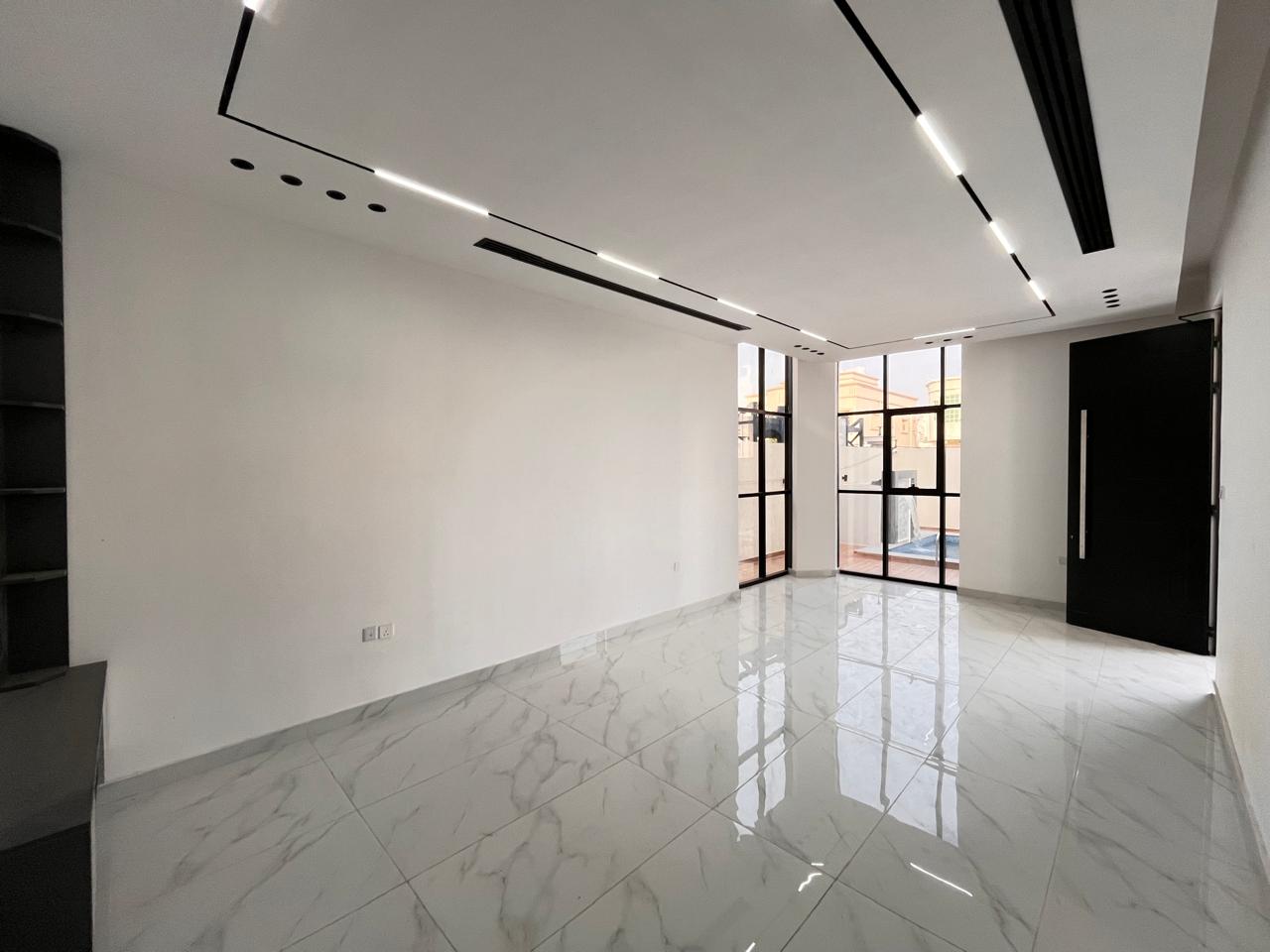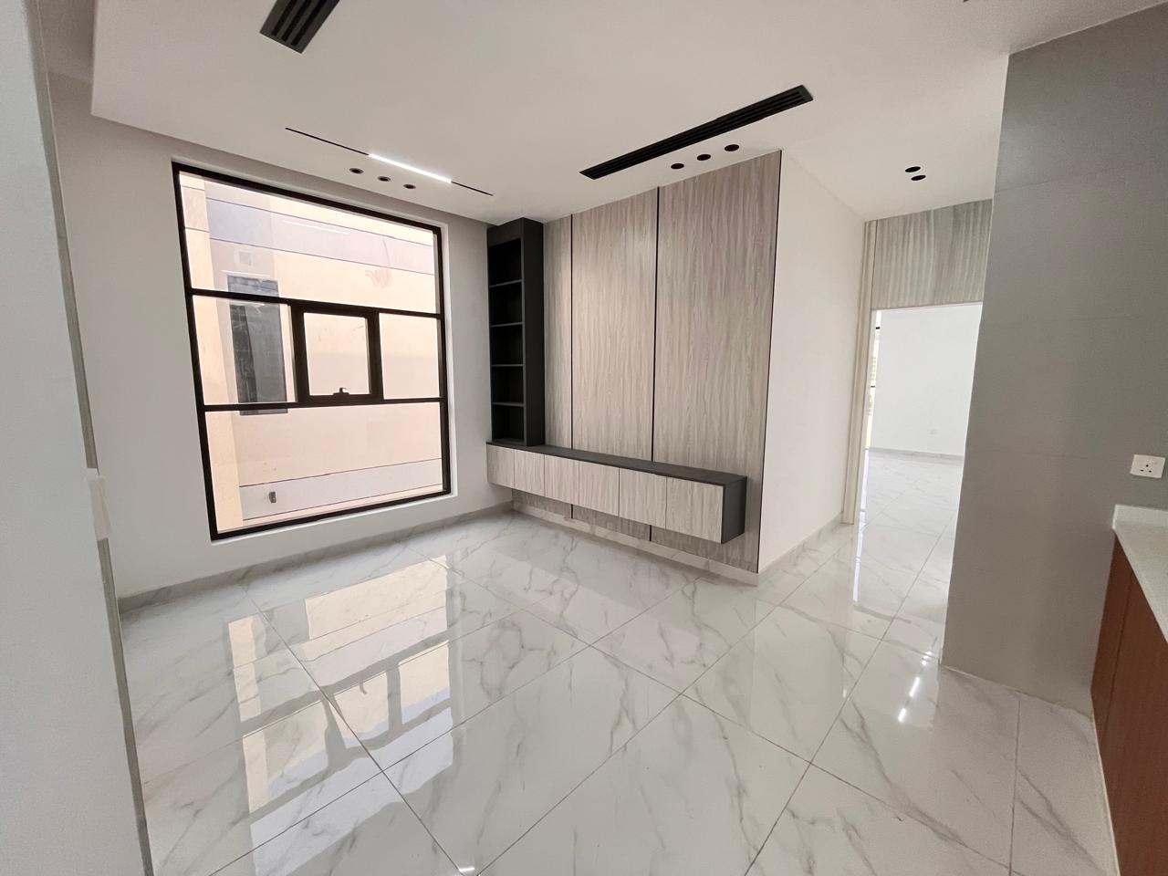 The villa offers a large open hall and a separate, spacious majlis, suitable for family gatherings and hosting guests. It includes a big open kitchen, maid’s room, small family lounge, pantry, and built-in wardrobes. Finishing includes gypsum ceilings, chandeliers, balconies, and central air conditioning. A private garden space is also available, adding outdoor comfort for families.