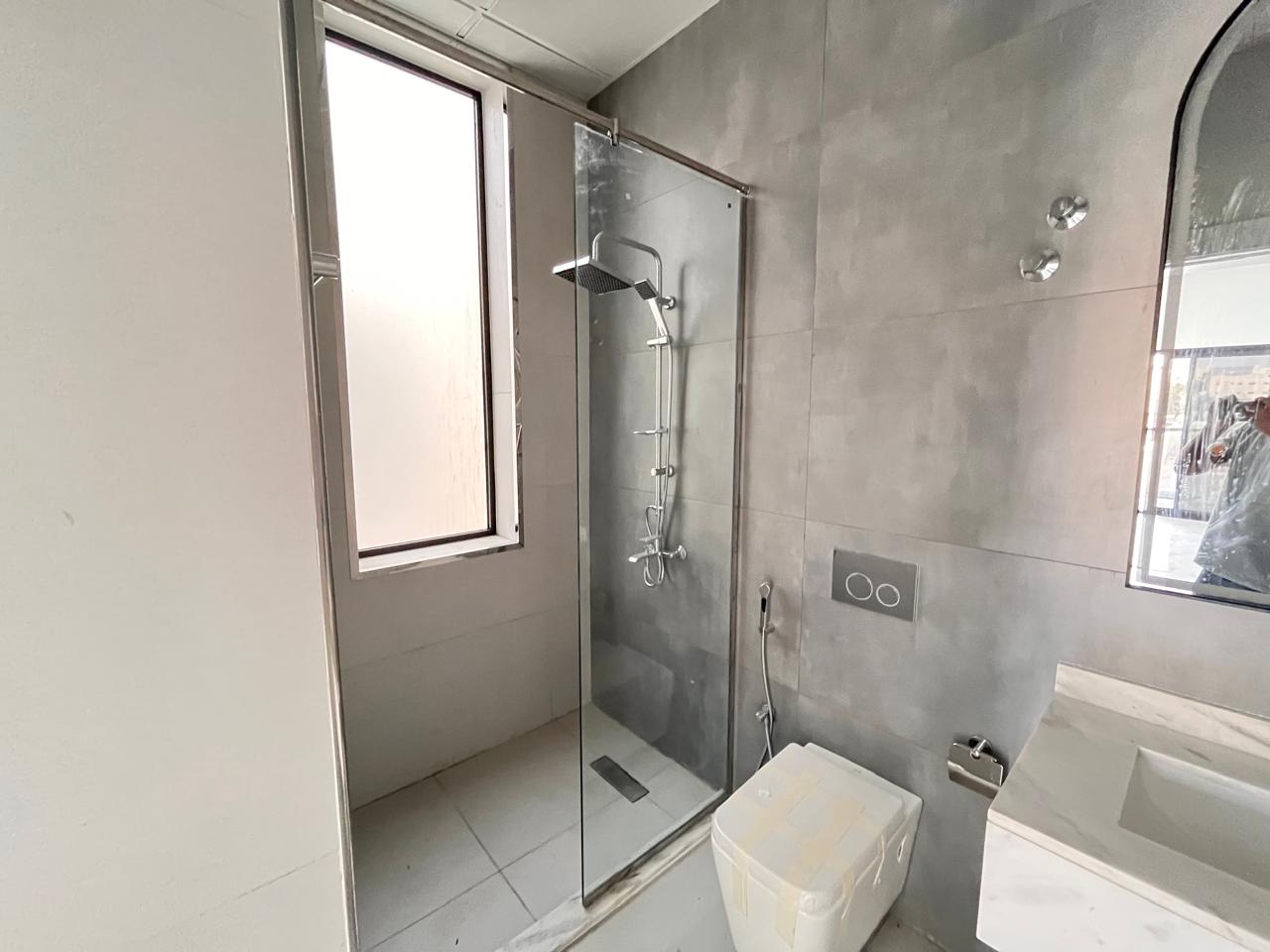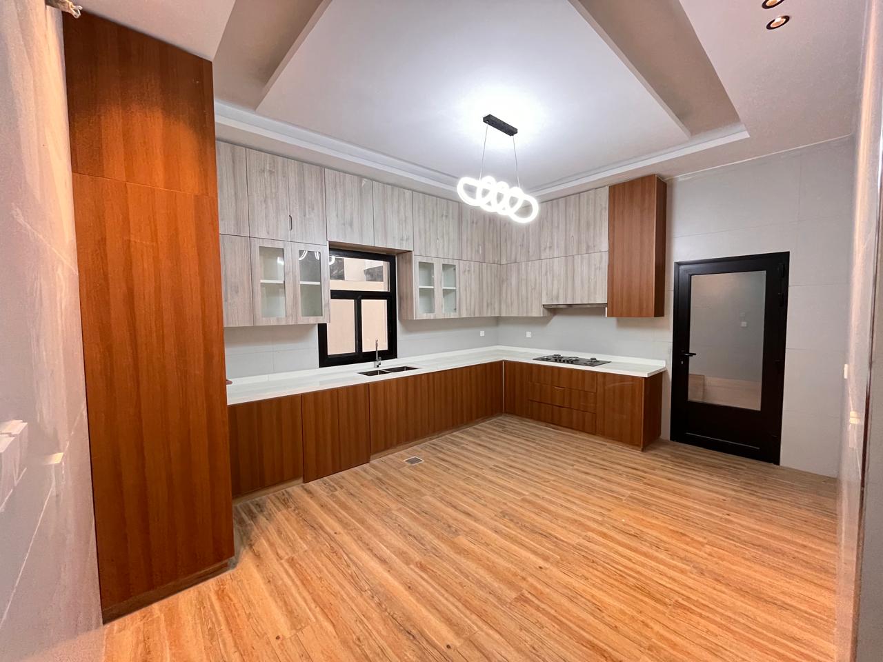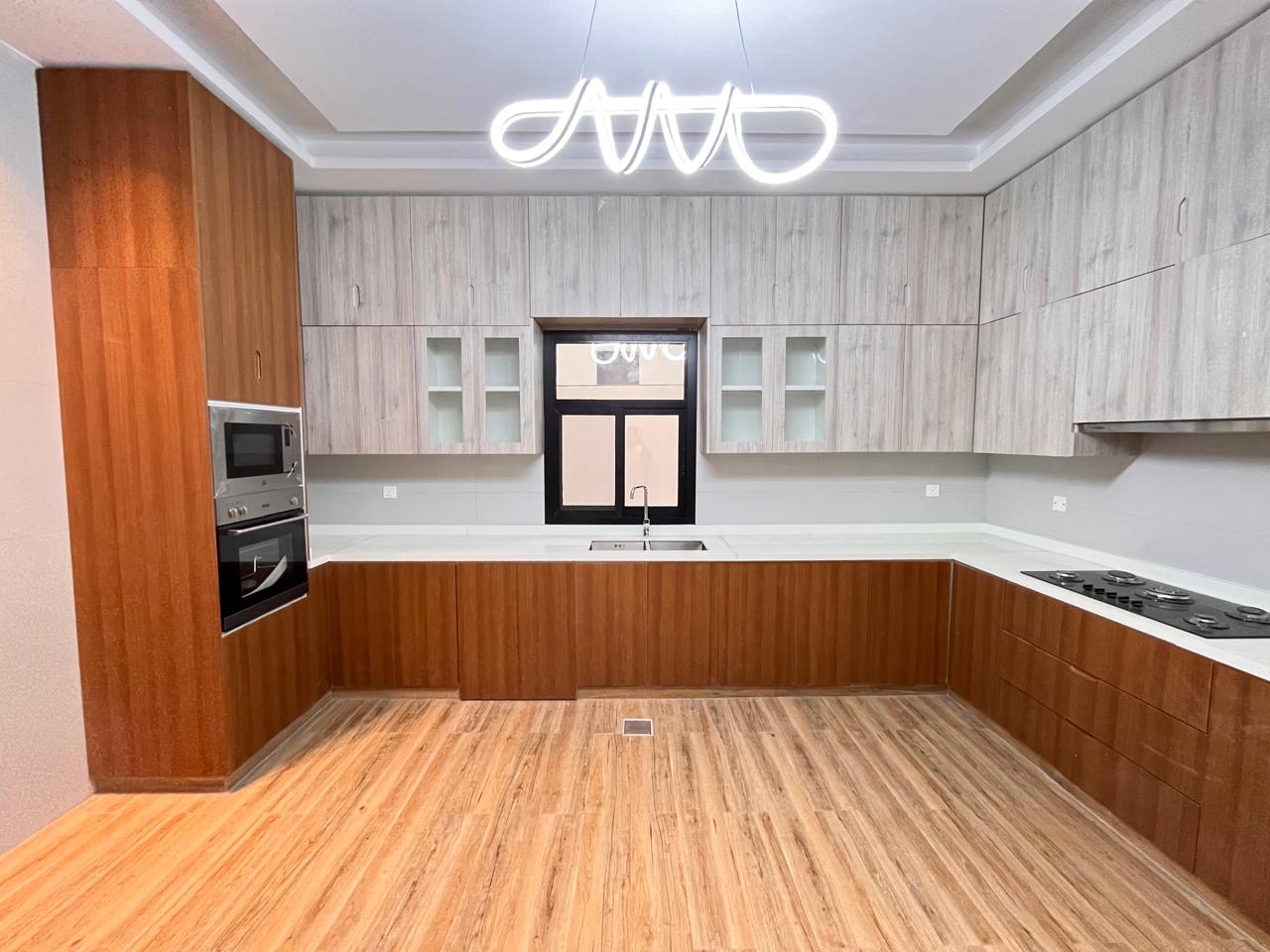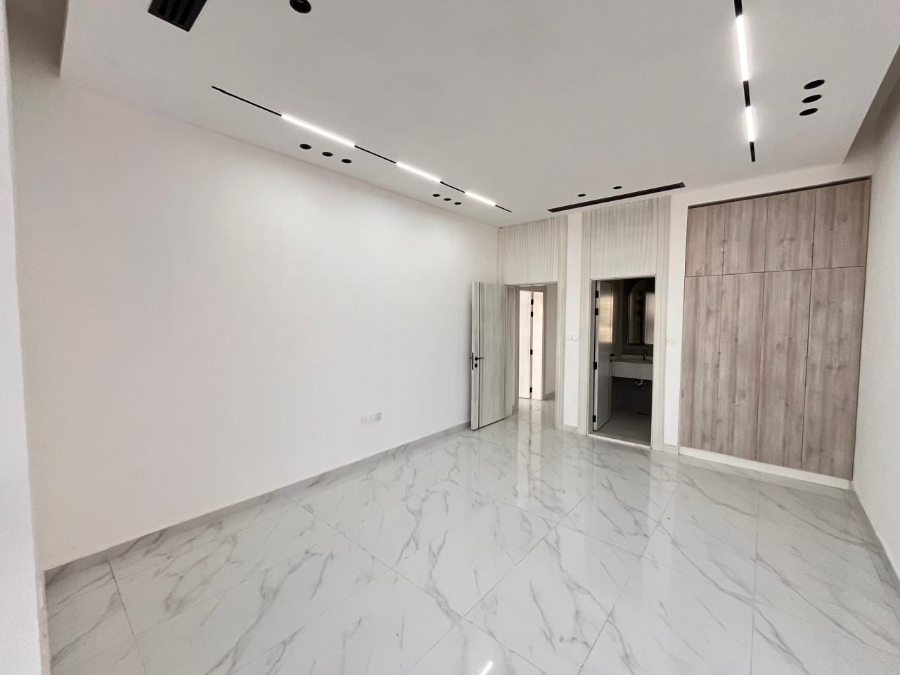 The villa offers a large open hall and a separate, spacious majlis, suitable for family gatherings and hosting guests. It includes a big open kitchen, maid’s room, small family lounge, pantry, and built-in wardrobes. Finishing includes gypsum ceilings, chandeliers, balconies, and central air conditioning. A private garden space is also available, adding outdoor comfort for families.