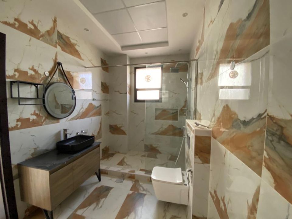 The villa’s ground floor is designed for the family's daily living needs. It comprises a fantastic Guest bedroom with a bathroom. It also involves a modernized kitchen, a maid’s room with a bathroom, and a wonderful parking space. The villa also has a significant extension in front of the property, providing additional outdoor space for family gatherings and events.