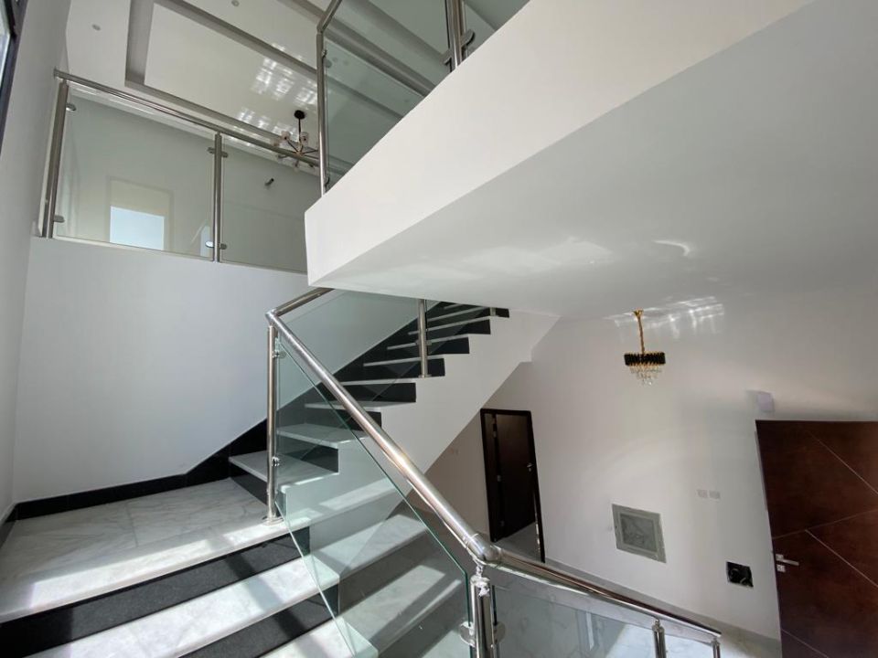 The villa’s first floor offers four master bedrooms with bathrooms and built-in wardrobes. Additionally, there is a distinctive loft preparatory kitchen and a balcony with a beautiful view. The villa does not have an open kitchen, which offers more privacy and allows the occupants to keep the kitchen area separate from the living spaces.
