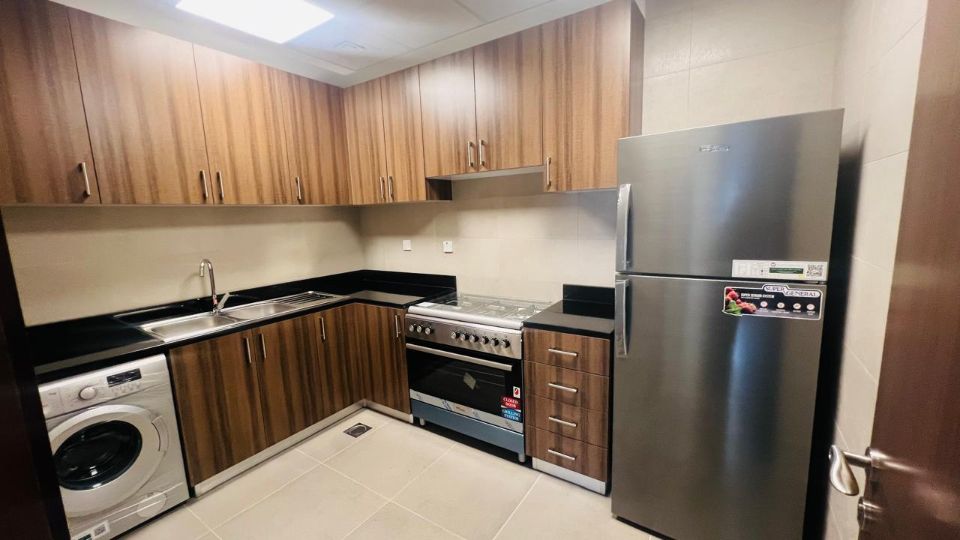 Despite its small size, the kitchen is well-designed, featuring contemporary appliances and sleek cabinetry. It is the ideal place for people who value both form and function because it offers a stylish and practical setting for meal preparation. This kitchen has everything you need to satisfy your appetite, whether you like to prepare elaborate meals or grab a quick snack.