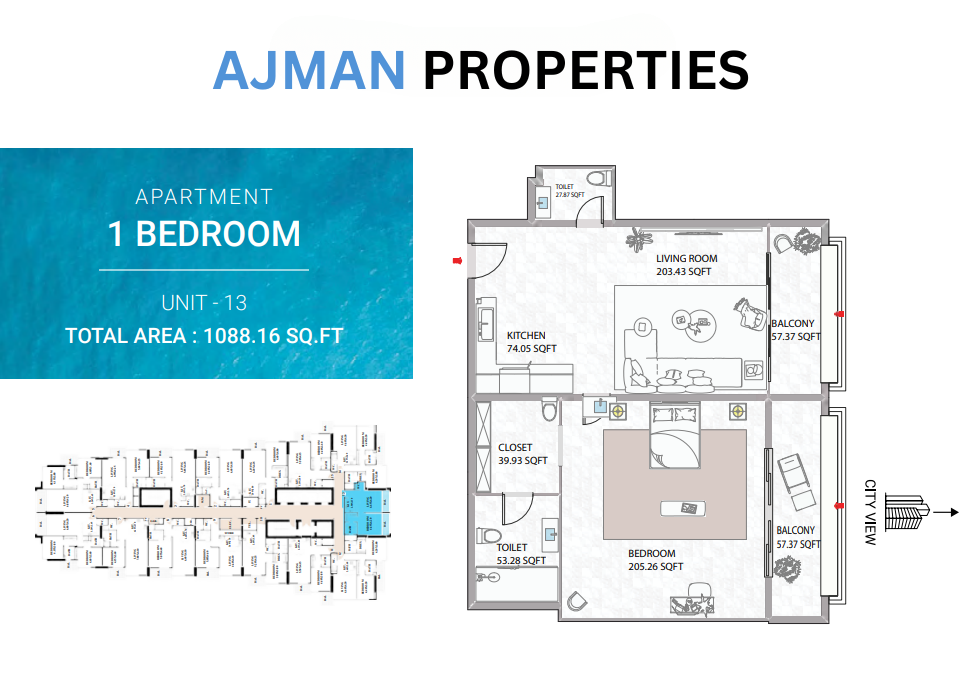 Ideal for families and investors, Ajman Creek Towers offers proximity to offices, schools, shopping malls, and public transport.